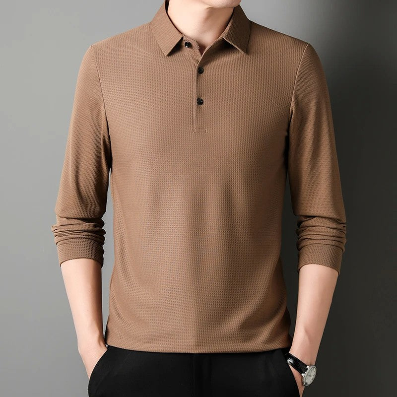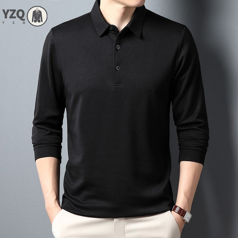 Men's Business Casual Polo Long Sleeve T-shirt Summer Comfortable Solid Cotton Top