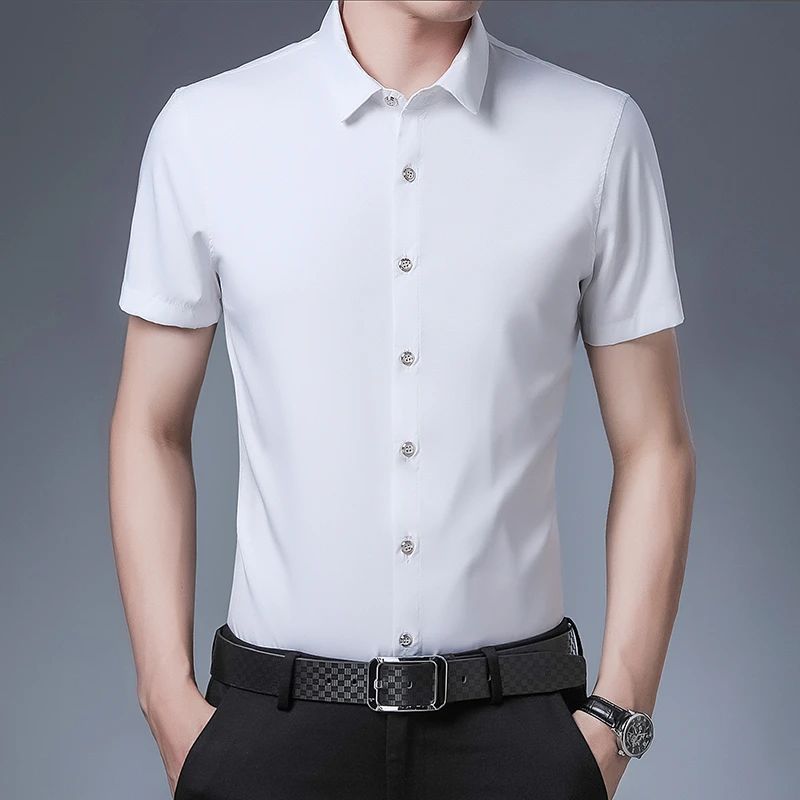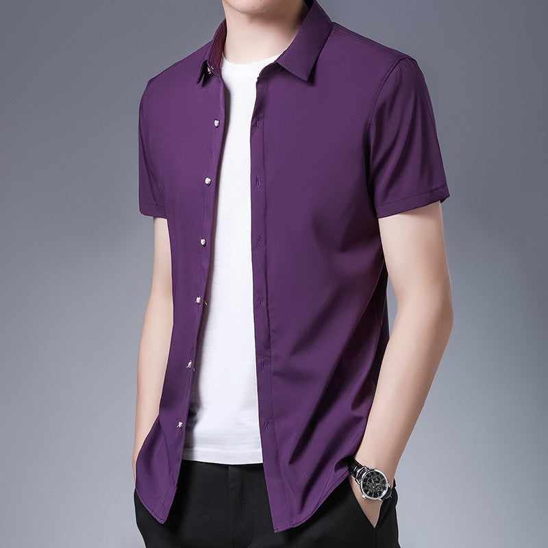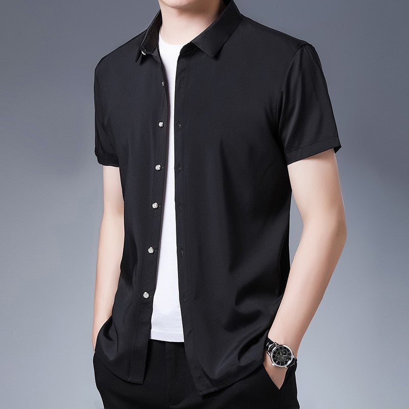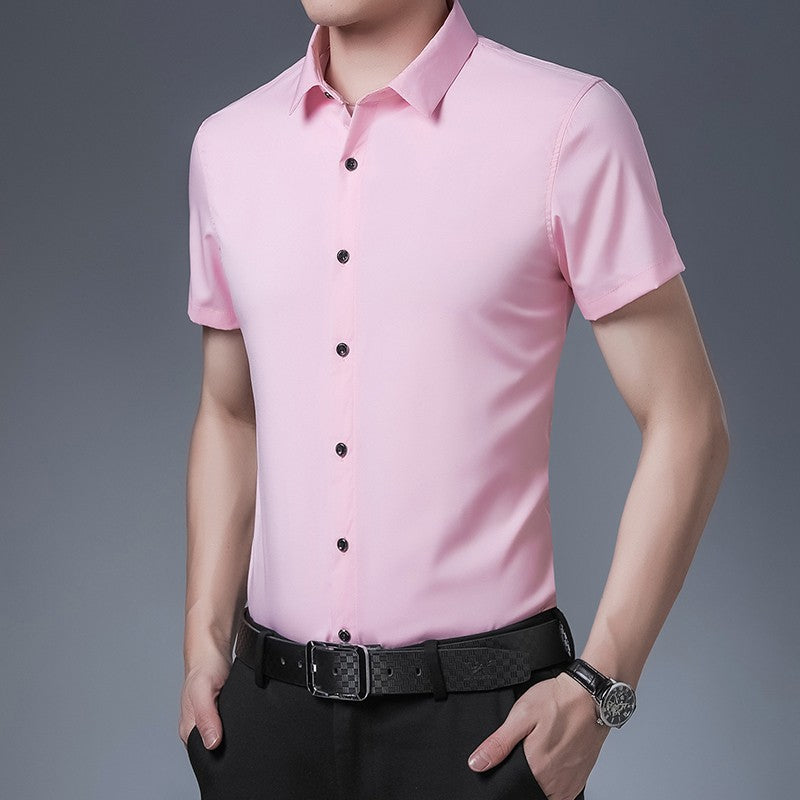 Men's Business Casual Solid Color Short Sleeved Shirt Non Ironing Comfortable Top