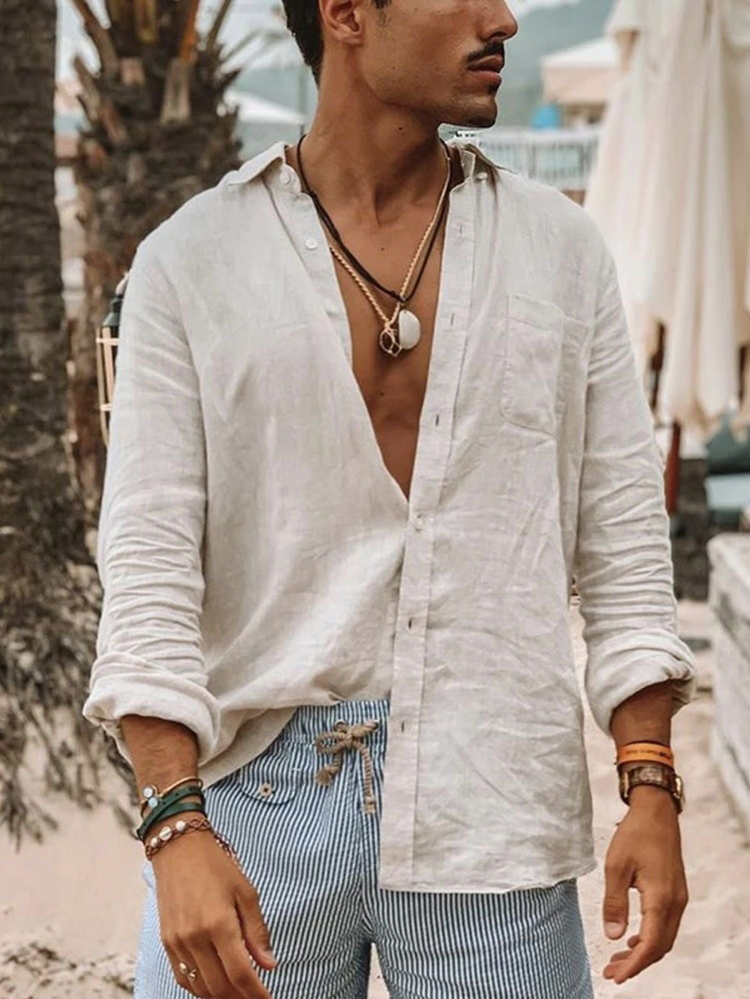 Men's casual fashion solid color thin long-sleeved shirt, lapel cardigan, suitable for outdoor activities