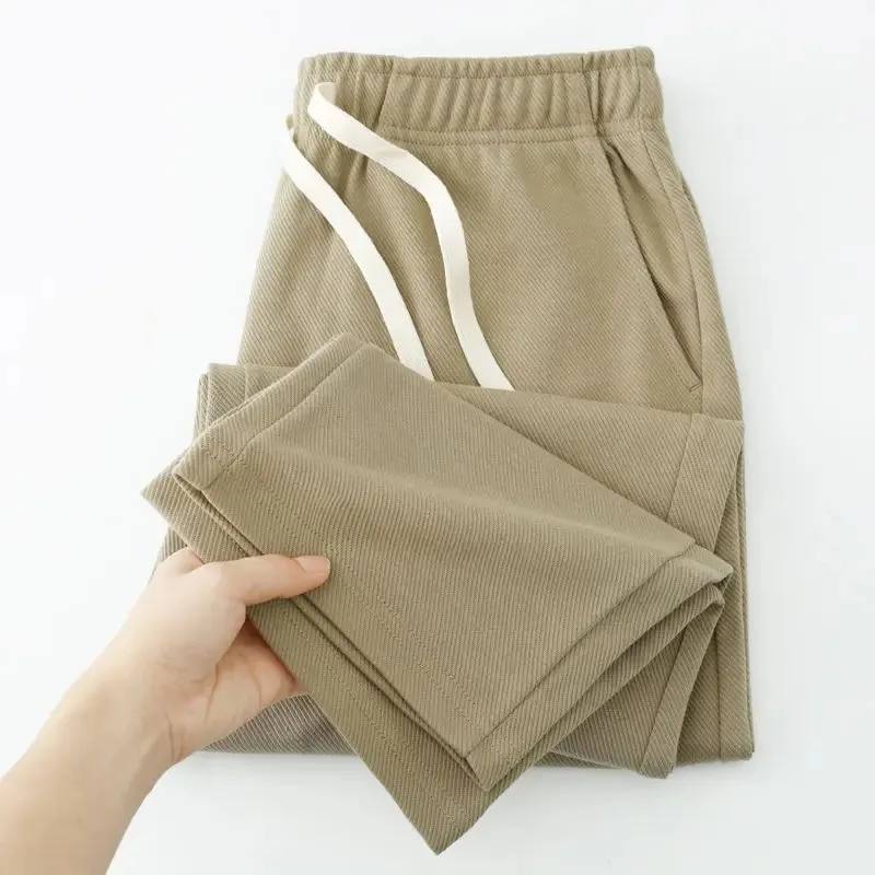 Men's Casual Pants Solid Elastic Waist Pocket Drawstring Loose Straight Sports Versatile Trouser Male Sweatpant Solid Breathable