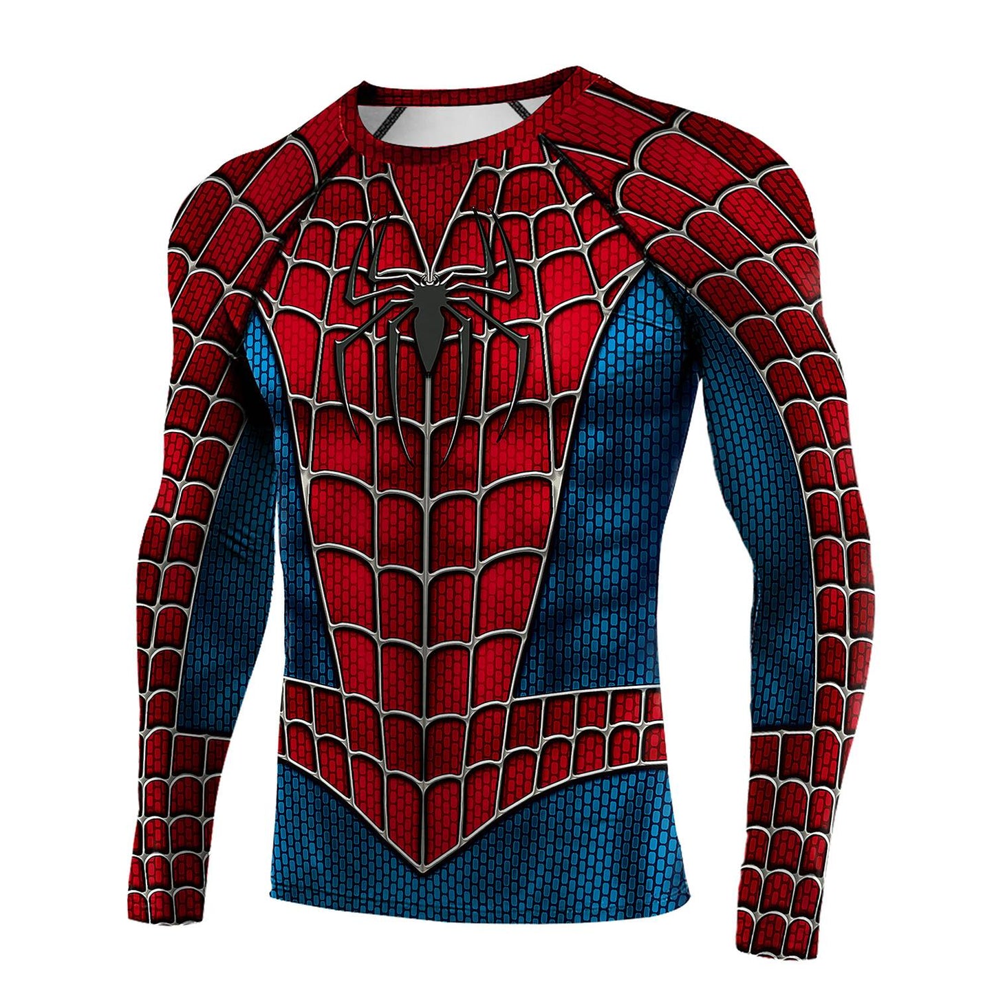 Mens Compression Shirts Long Sleeve Comics Spider Cosplay T-Shirt Superhero Tops Elastic Fitness Sportwear Halloween Clothes
