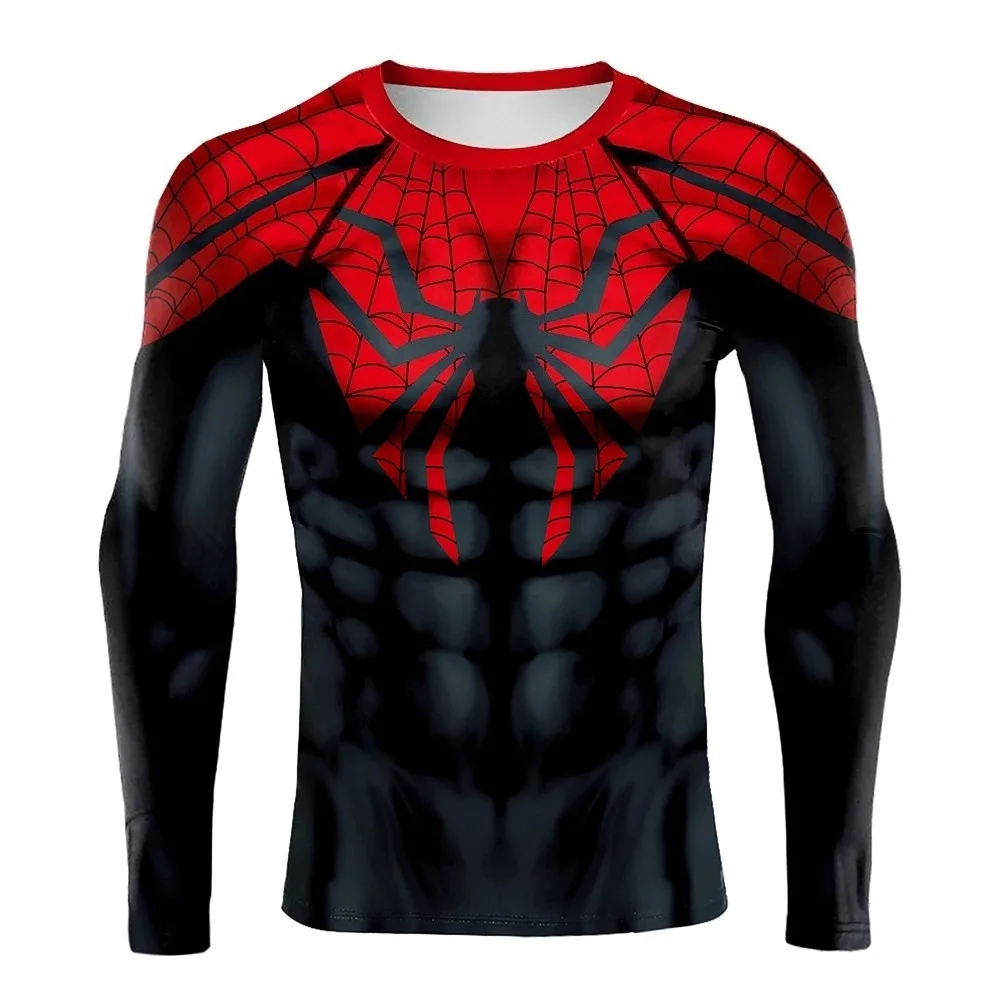 Mens Compression Shirts Long Sleeve Comics Spider Cosplay T-Shirt Superhero Tops Elastic Fitness Sportwear Halloween Clothes