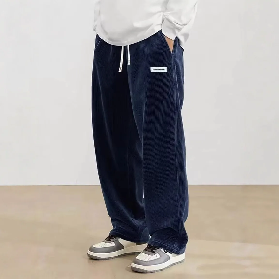 Mens Corduroy Casual Pants Fashion Loose Fit Baggy Pant Straight Sweatpants Elastic Waist Drawstring Outdoor Streetwear New 2025
