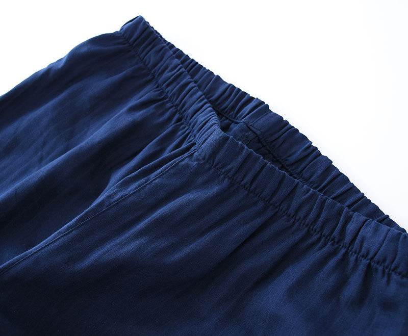 Men's Cotton Kimono Robes Pajamas Clothes Thin Spring and Autumn Black and Navy Colors Home Clothes Loose Casual Men Robe Sets