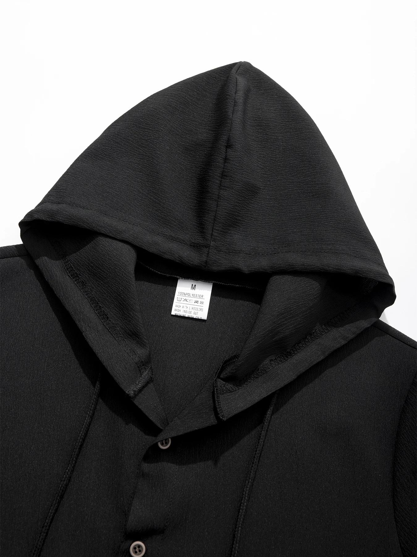 2.Design : This men's cotton and linen shirt features long sleeves, button closure, and drawstring hood, combining practicality and style. The classic button design paired with a casual drawstring hood creates a unique urban atmosphere, suitable for wearing in various occasions.