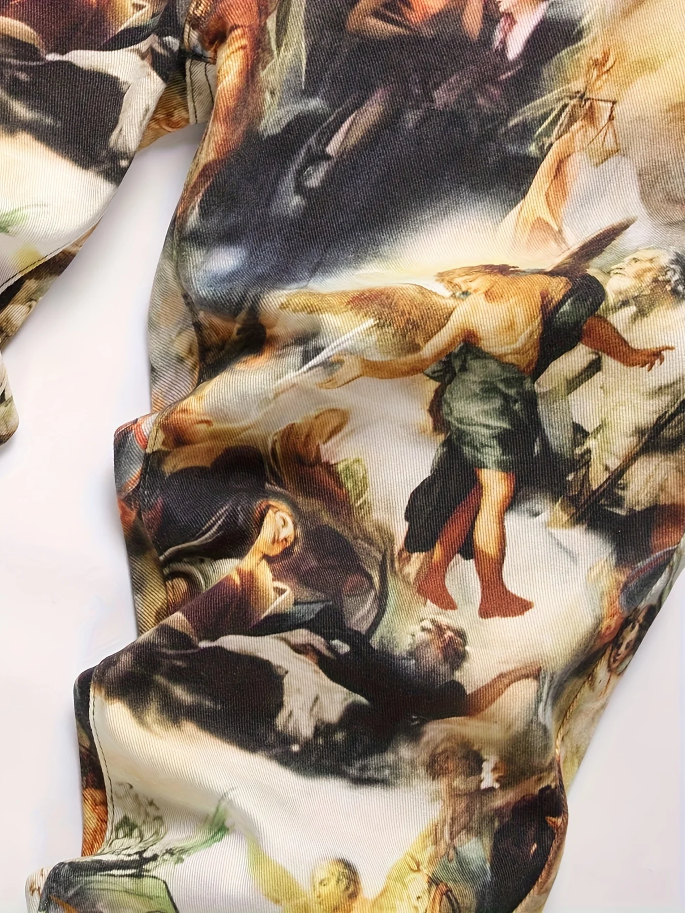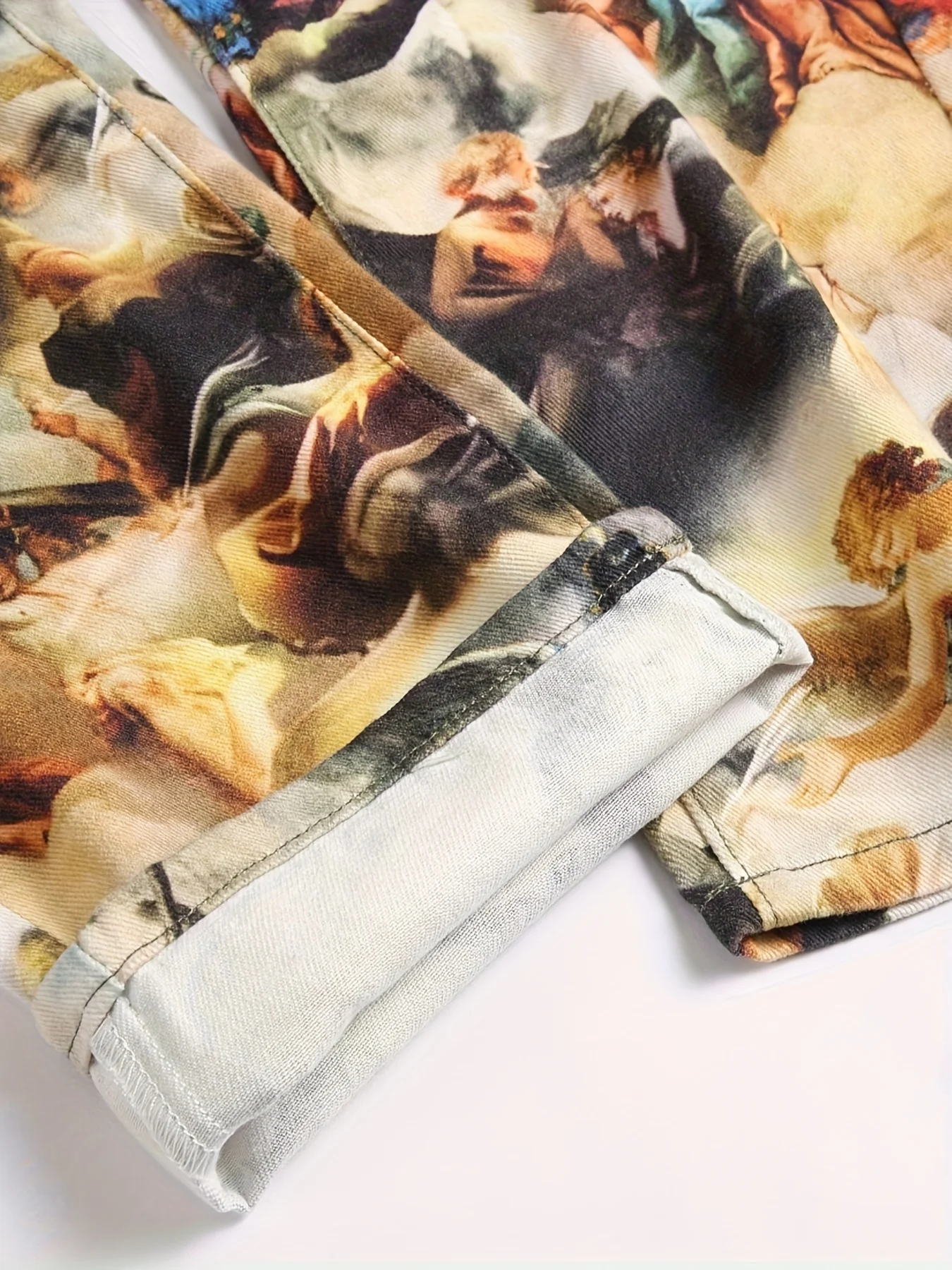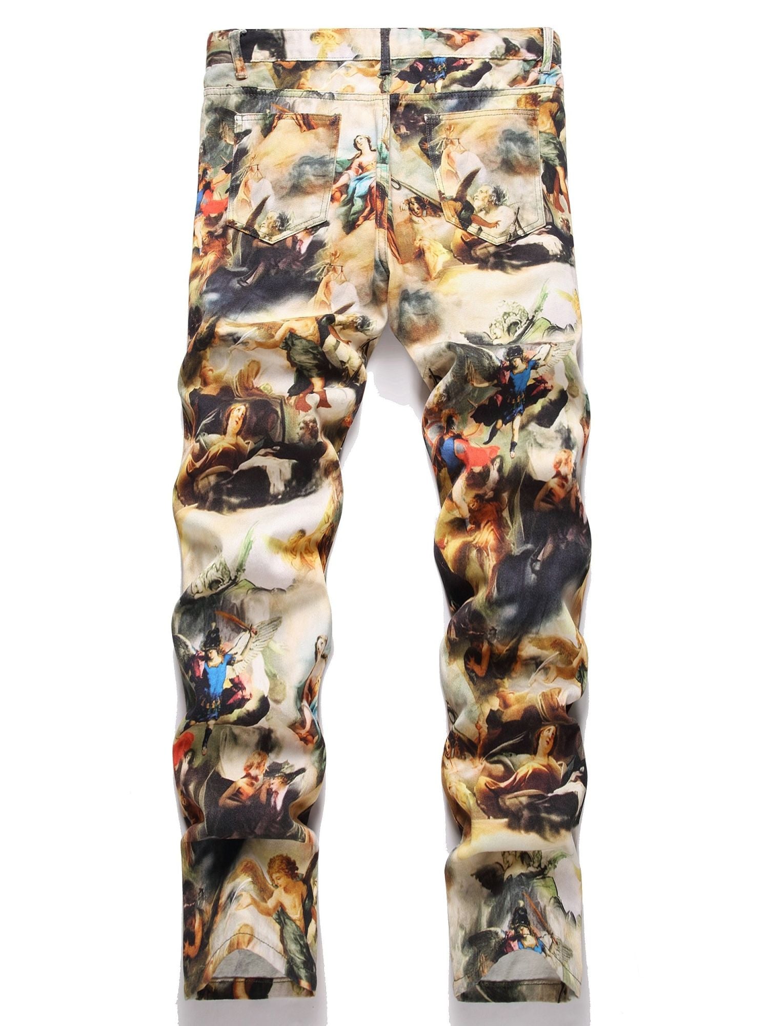 Men's creative oil painting printed jeans, European retro denim straight leg pants