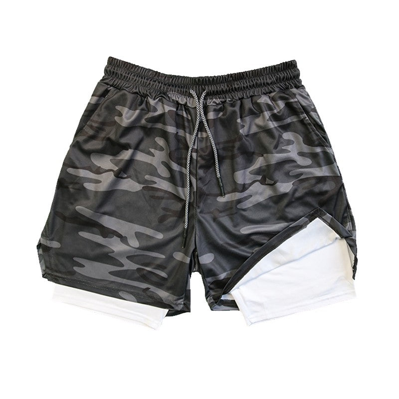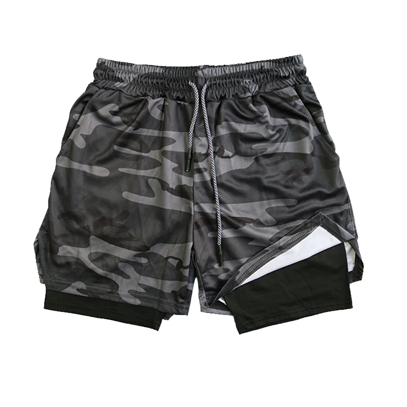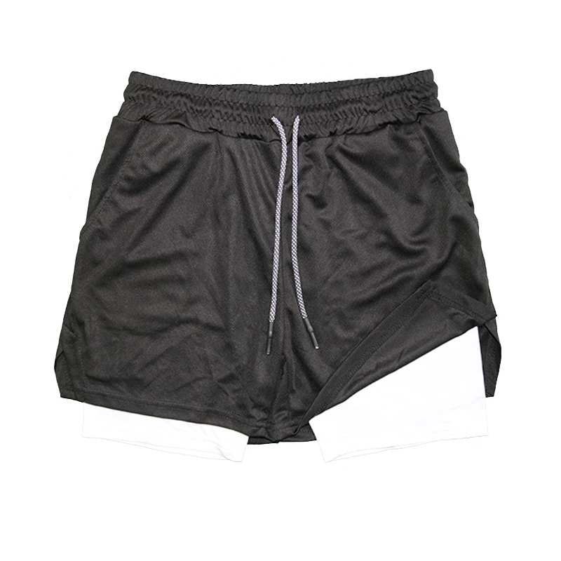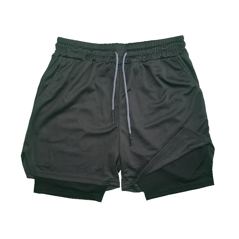 Men's Double Layer Fitness Shorts Drawstring Mesh Lining Elastic Waist Breathable Quick Dry to Beach Pool Summer Male