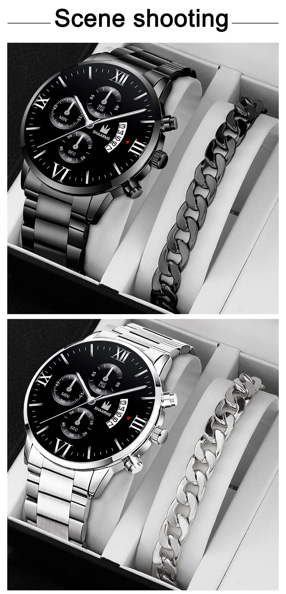• Fashionable Design :The SHAARMS men's watch boasts a stylish and modern design, perfect for the business-minded man. Its three-eye design and six-pin calendar add a touch of sophistication and functionality.