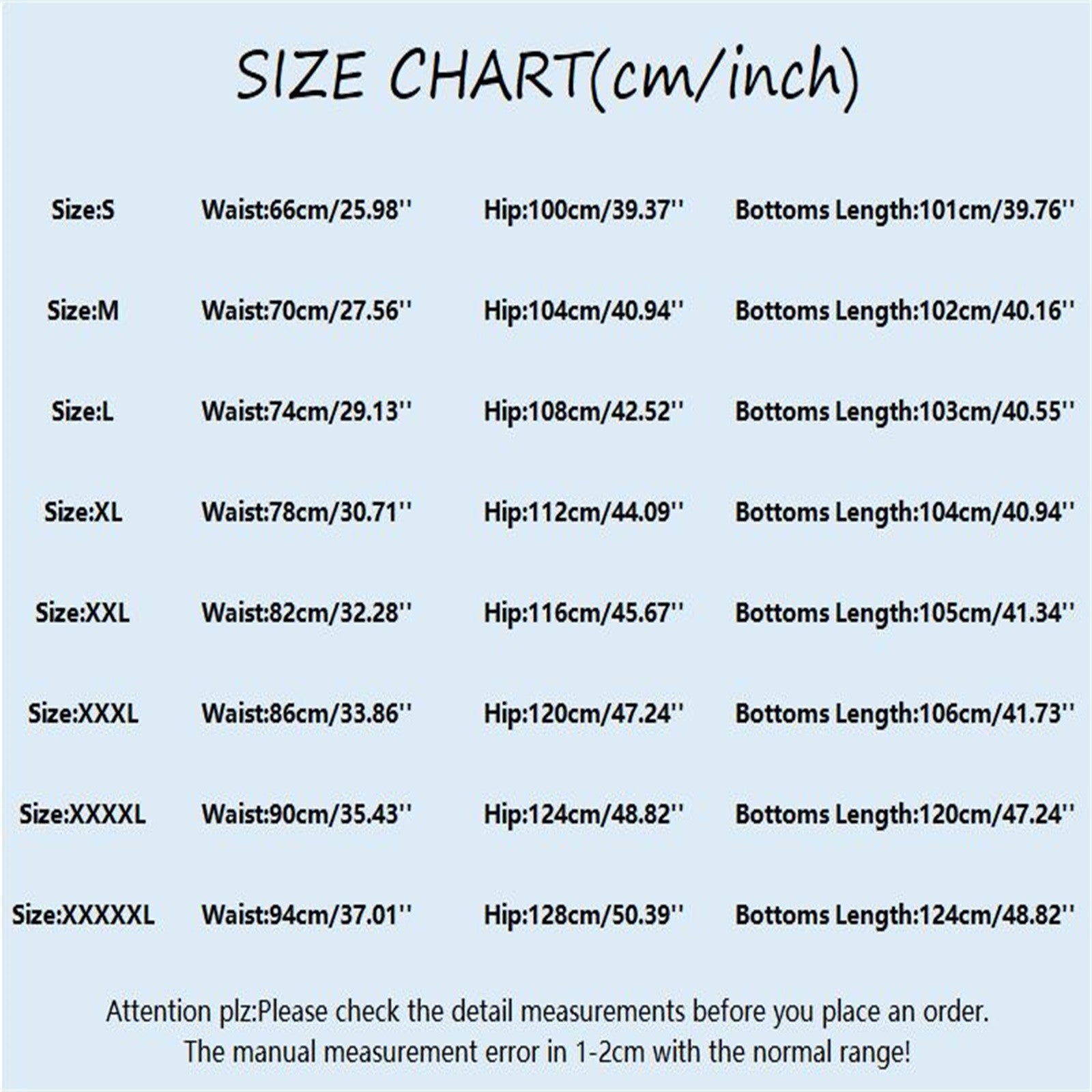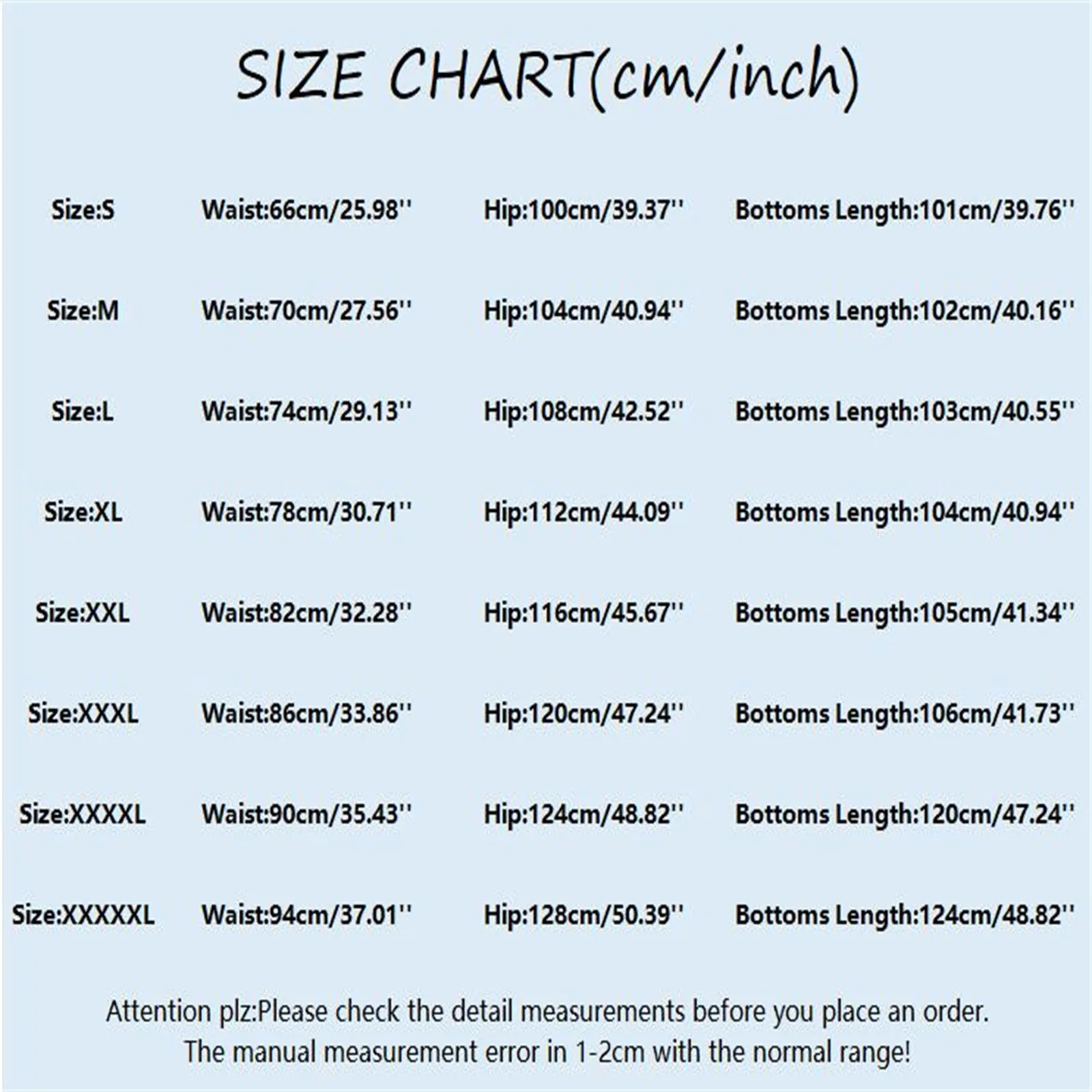 | Size:XXXXL | Waist:90cm/35.43'' | Hip:124cm/48.82'' | Bottoms Length:120cm/47.24'' |