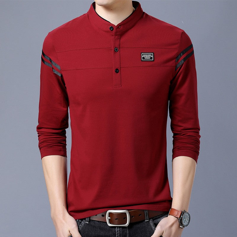 Men's Fashion Summer Long Sleeved POLO T-shirt Casual Cotton Breathable Top Stand Up Neck Long Sleeve Korean Comfortable Shirt
