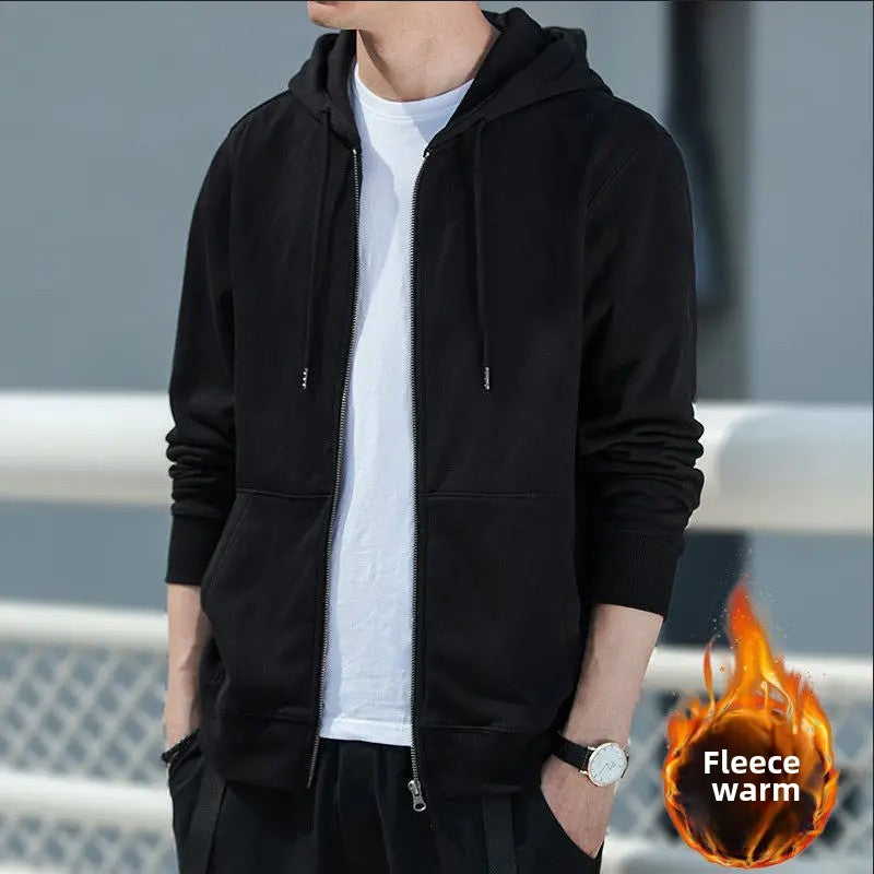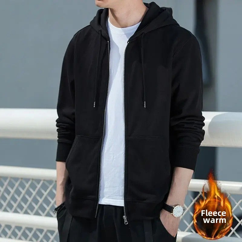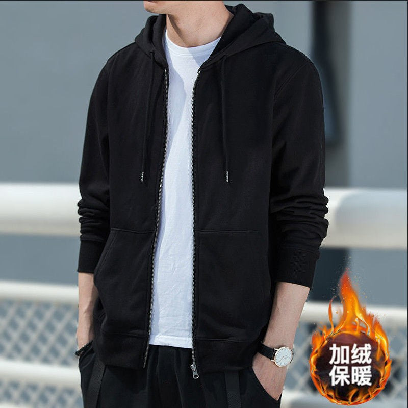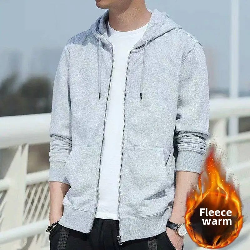 Men's Fleece-Lined Warm Jacket 2024 Autumn Winter New Cardigan Sports Top Casual Hooded Sweatshirt Regular Length China Origin