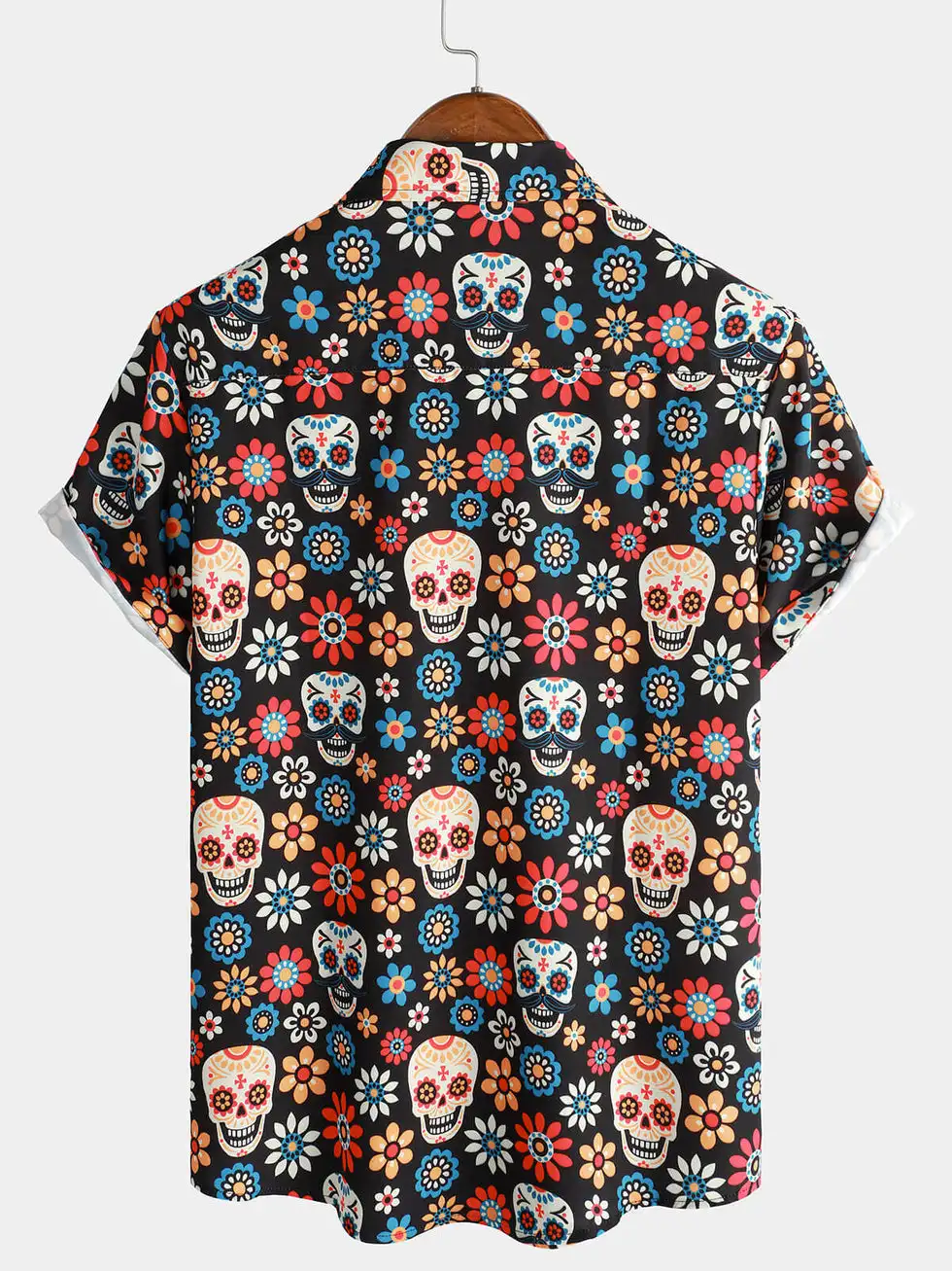 Men's Floral Skull Smiley Shirt Tropical Fashion Hawaiian Street Casual Short Sleeve Shirt Lapel Fashion Outdoor