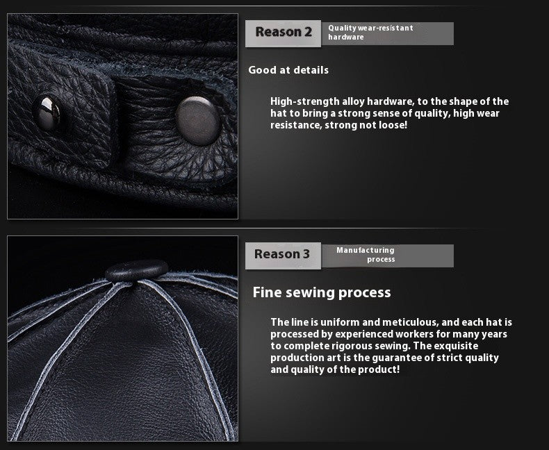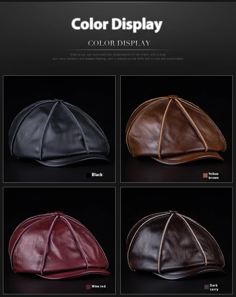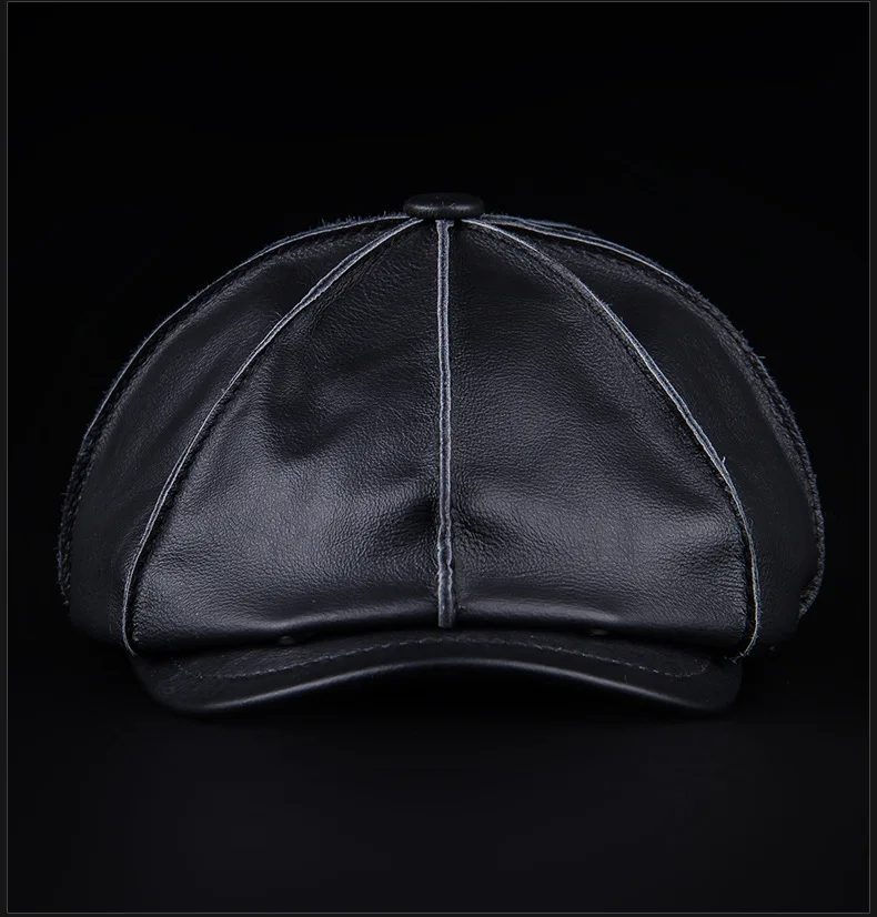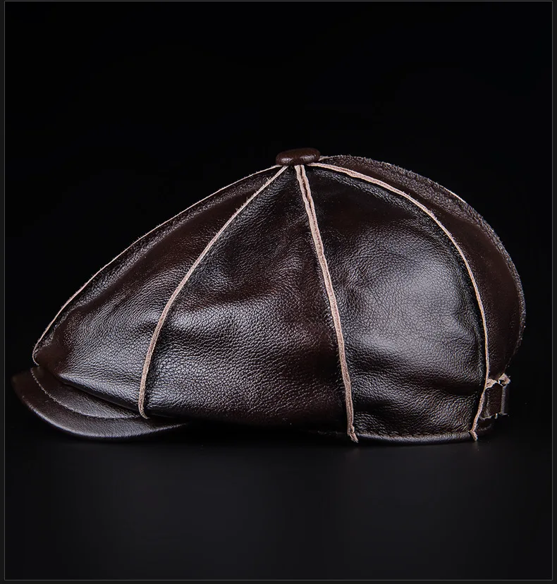 Men's Genuine Leather Warm Octagonal Cap Elegant Adjustable Newsboy Beret Cowhide Tongue Cap