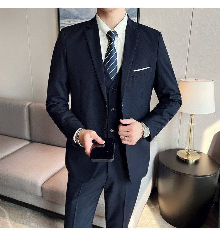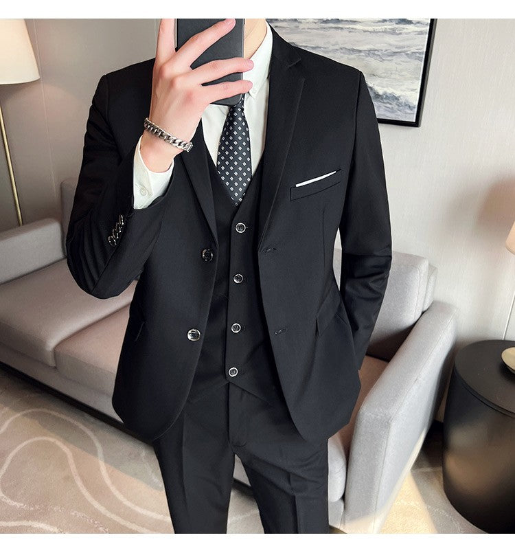 Men's High-Quality 3-Piece Business Casual Wedding Suit Vest Trousers Set Handsome Fashion Banquet Clothing S-6XL