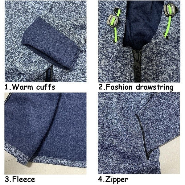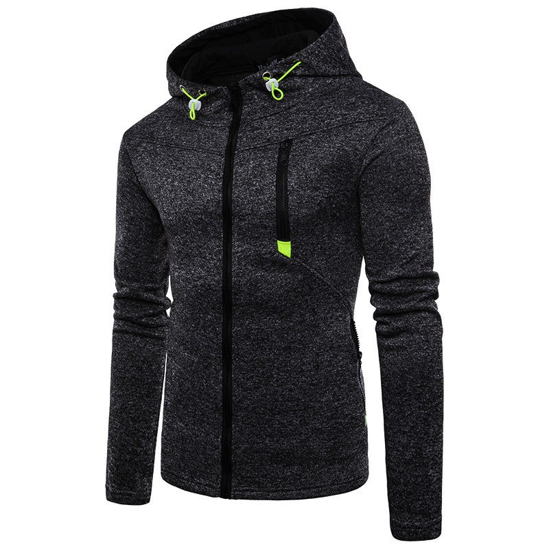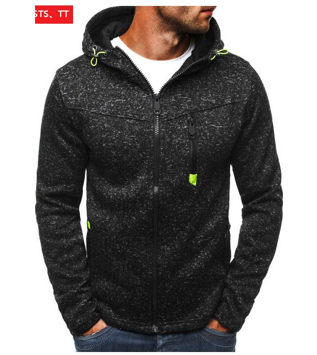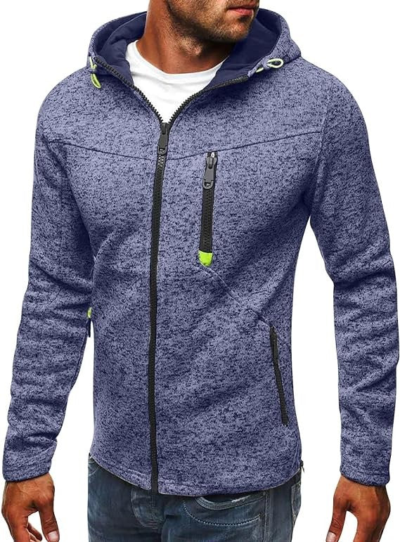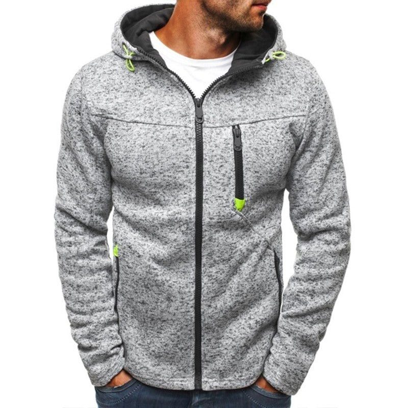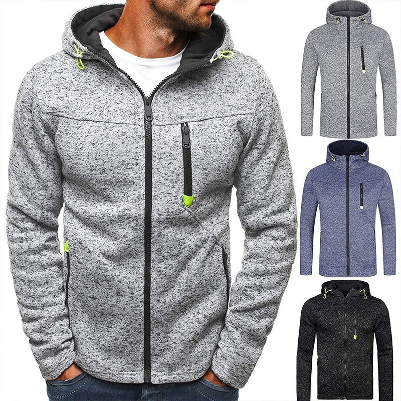 Men's Hoodie with Side Zipper Pockets Thin Wool Solid Color Casual Outdoor Hooded Tracksuit Long Sleeves Slim Hooded Jacket
