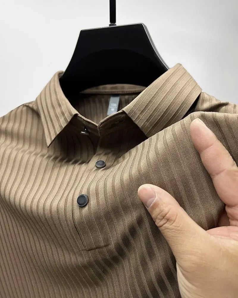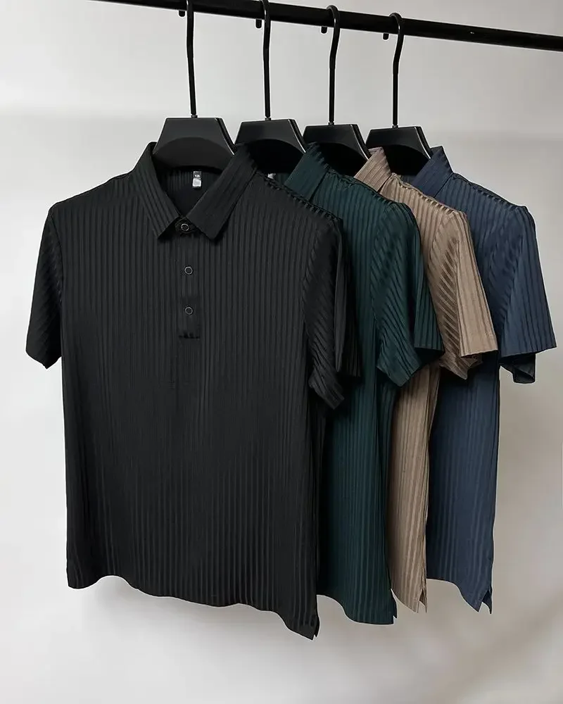 Men's Ice Silk Polo Shirt, Lapel, Hollow, Short-Sleeved, Breathable, Business Fashion T-Shirt, Men's Brand Clothing, Summer, New