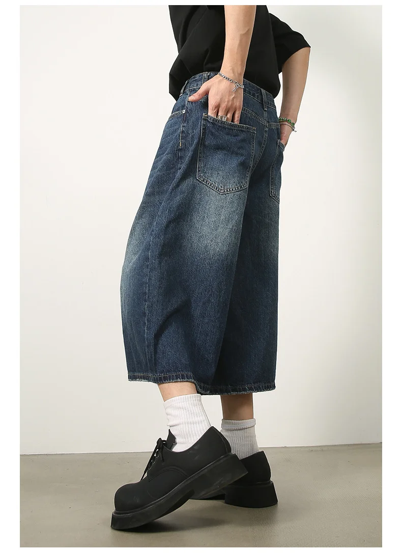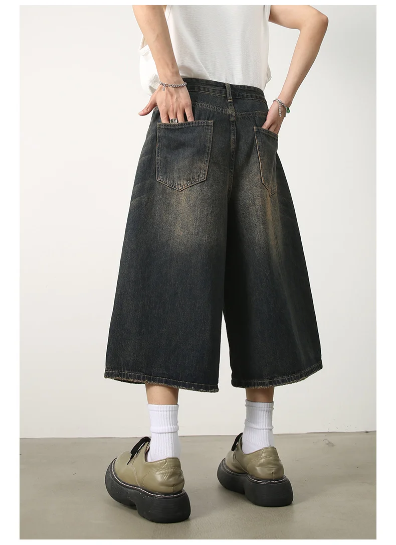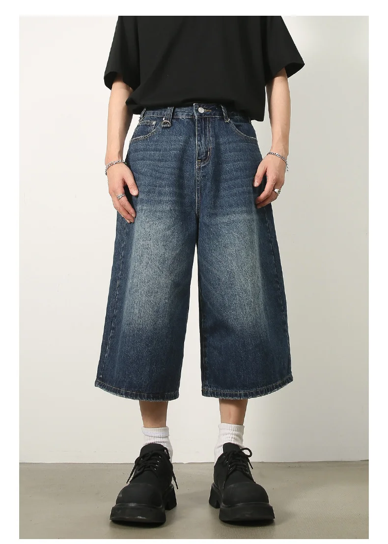 Men's Jeans American Style Vintage Loose Fit Wide Leg Straight Leg Denim Shorts Fashion Design Summer Y2k Gothic Washed Shorts