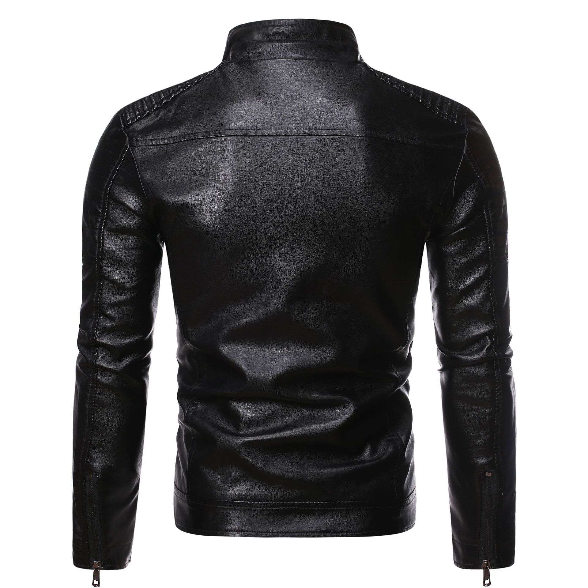 Men's leather jacket 2025 new spring and autumn thin style stand collar striped PU leather jacket motorcycle leather jacket