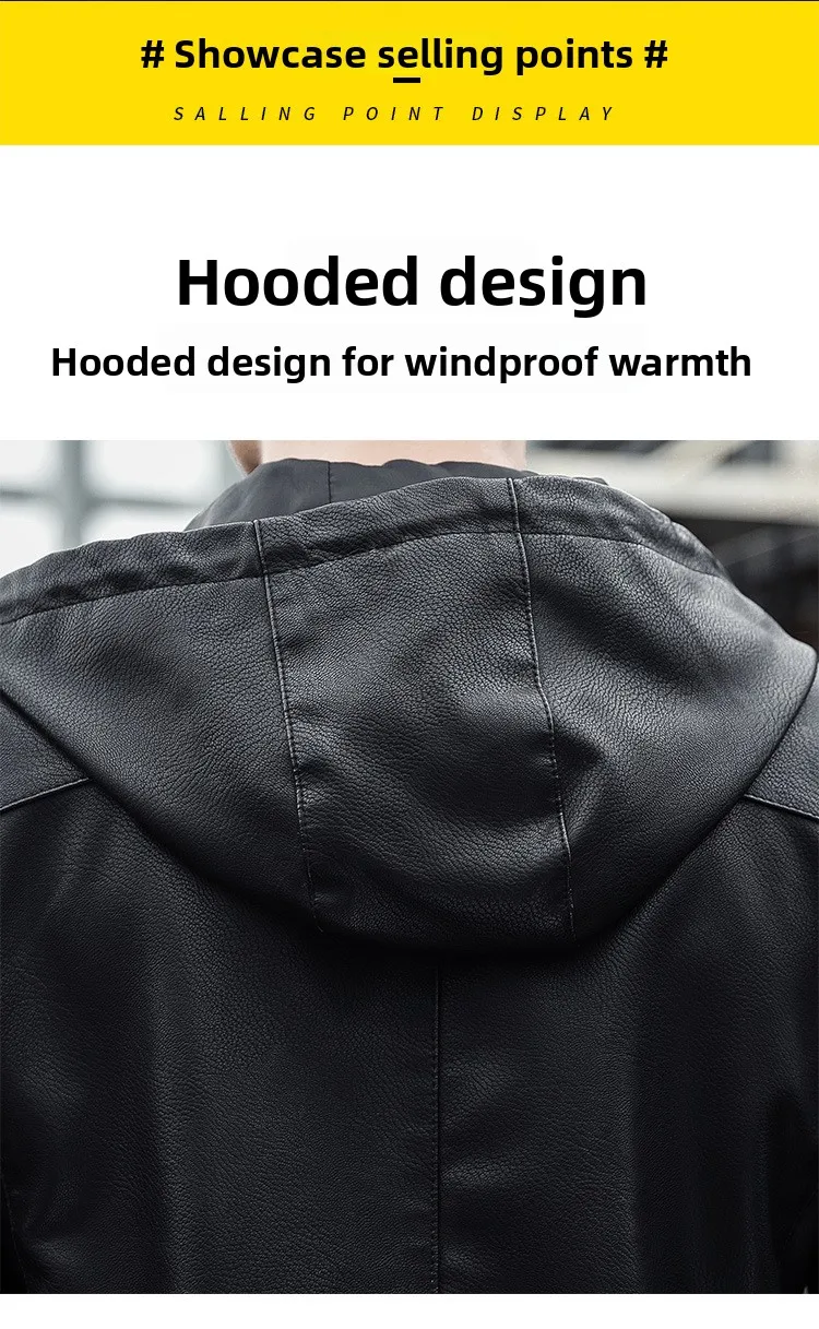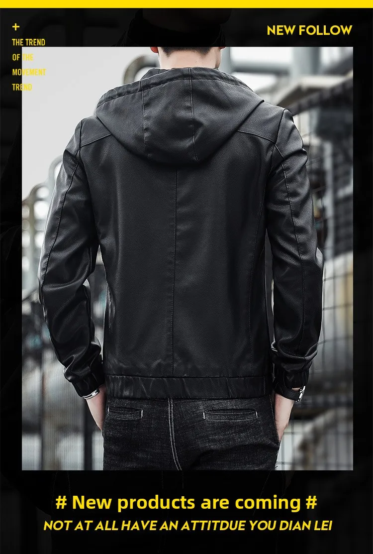 Men's Leather Jacket, Men's Hoodie, Slim-fit Korean Style Biker Casual Coat