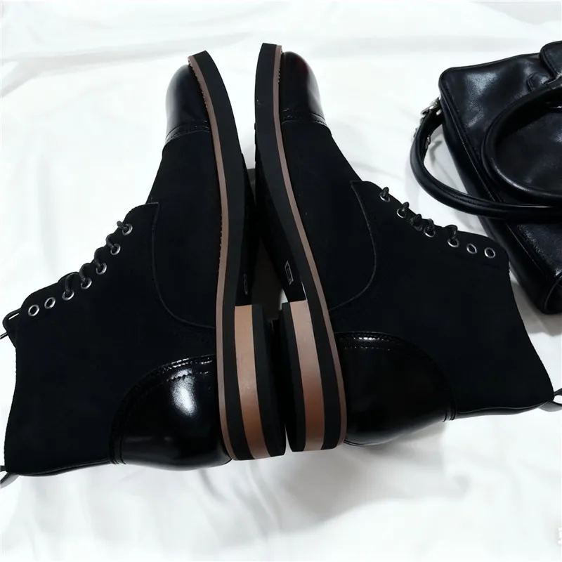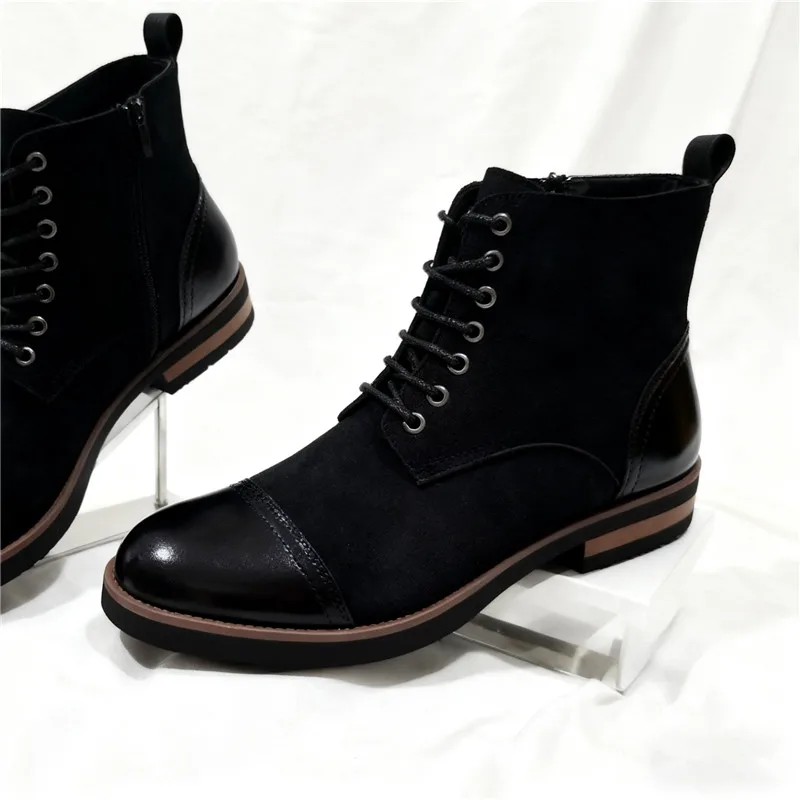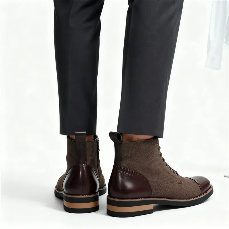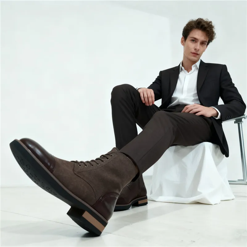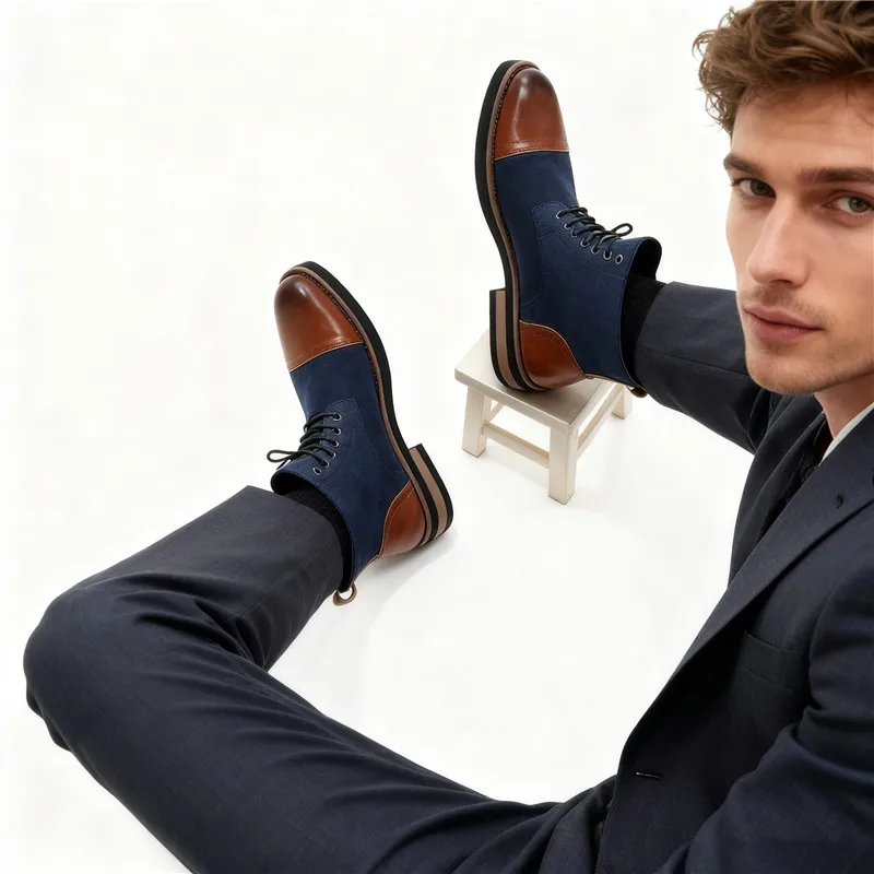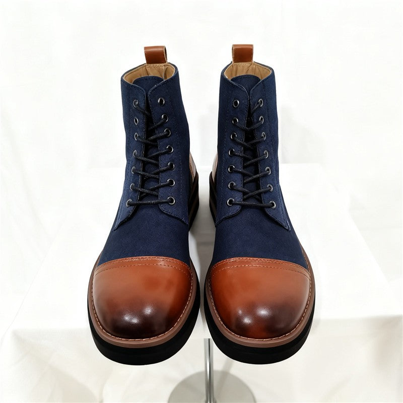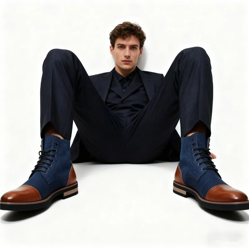 Men's Leather Lace - up Ankle Boots Retro Color - Block Formal Casual Boots Comfortable Non - slip Dress Boots For Daily Wear