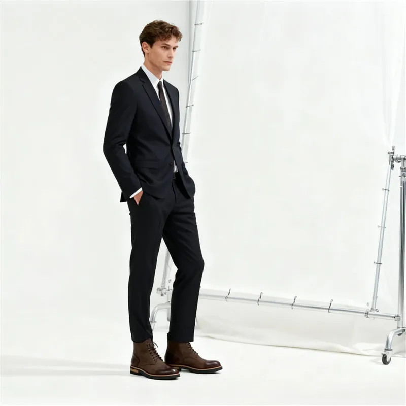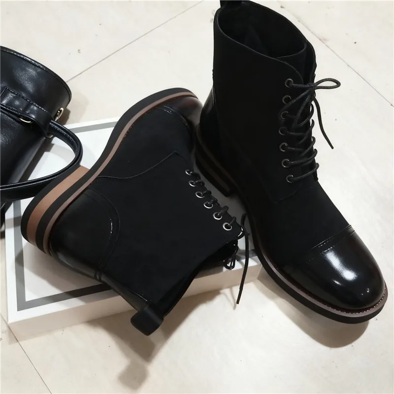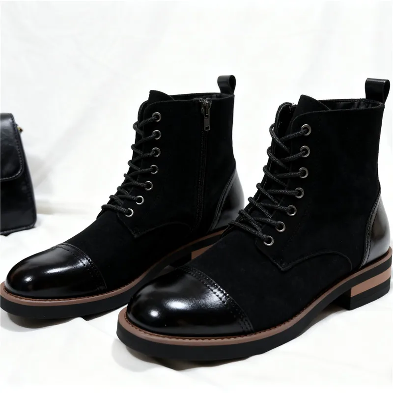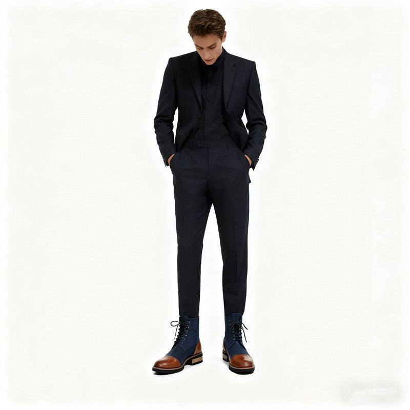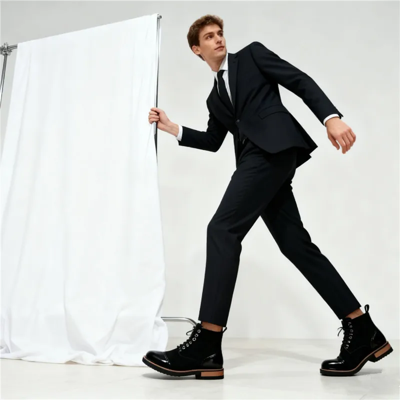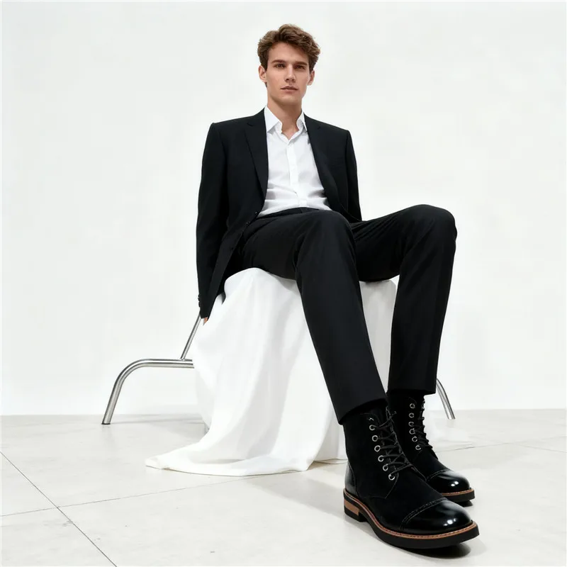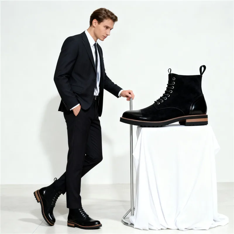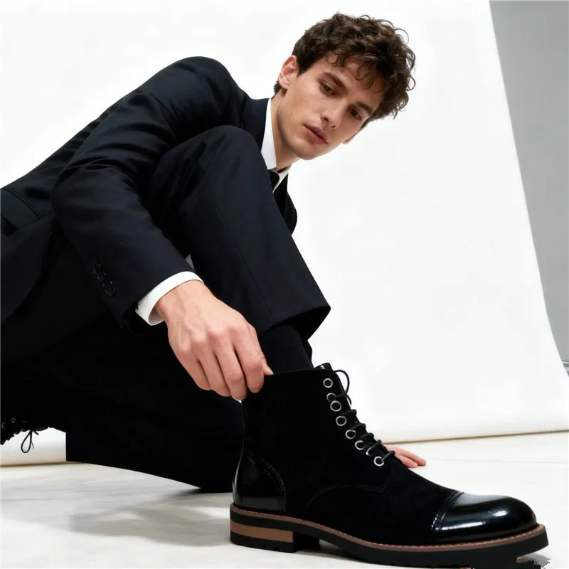 Men's Leather Lace - up Ankle Boots Retro Color - Block Formal Casual Boots Comfortable Non - slip Dress Boots For Daily Wear