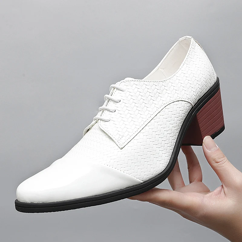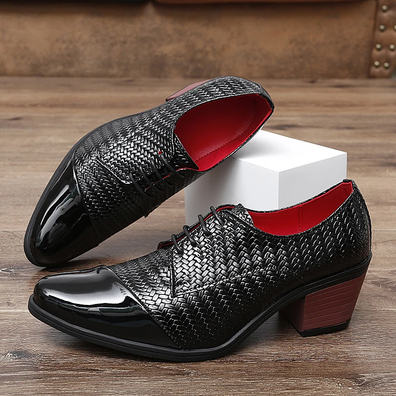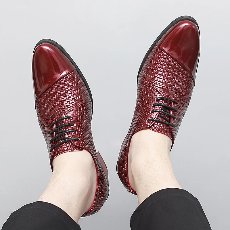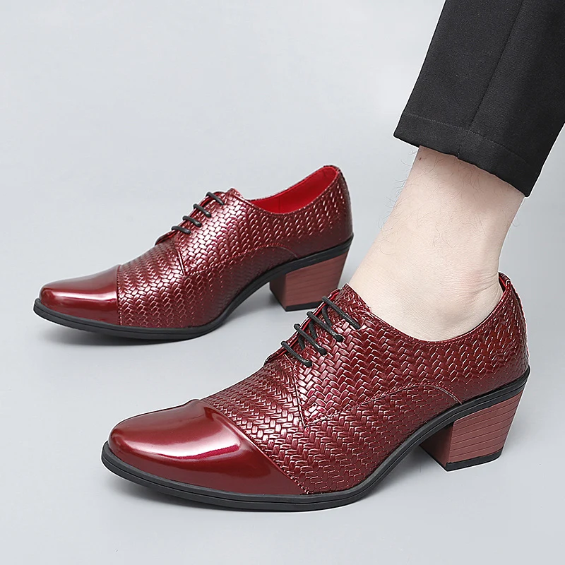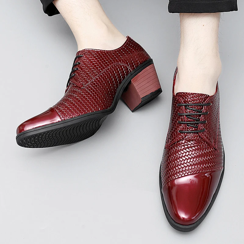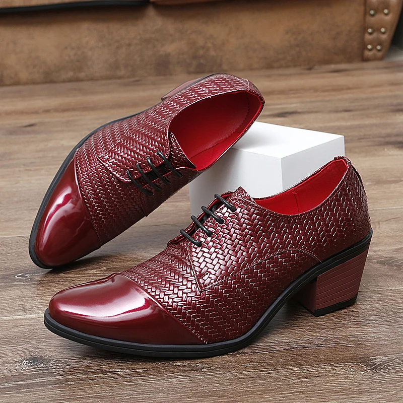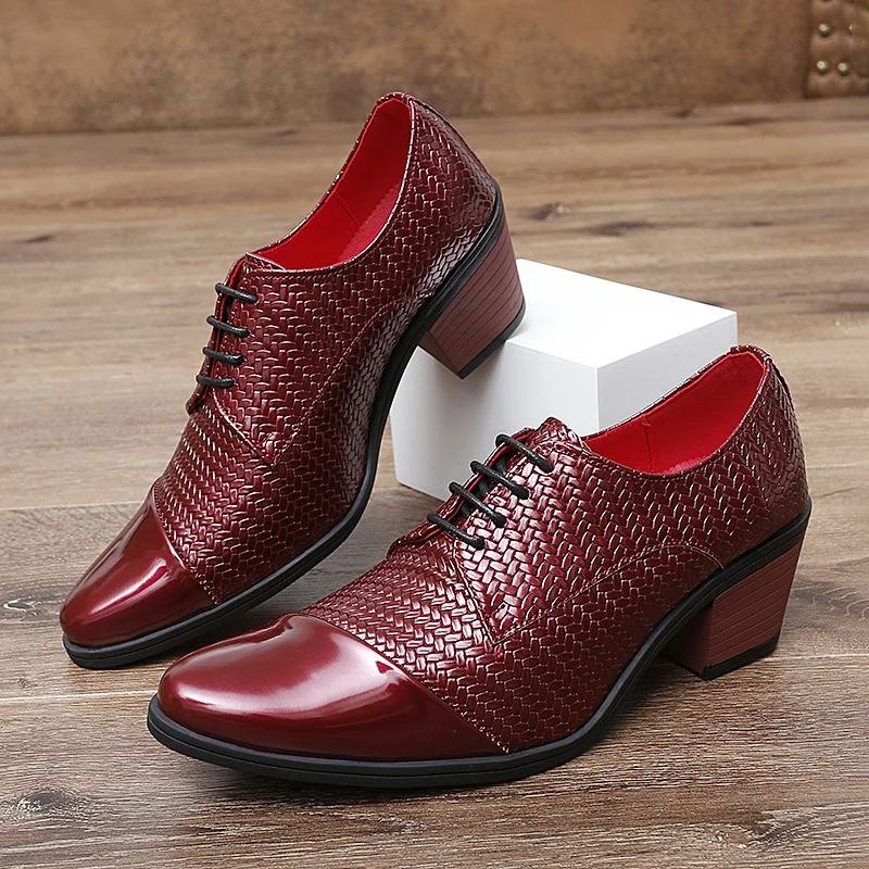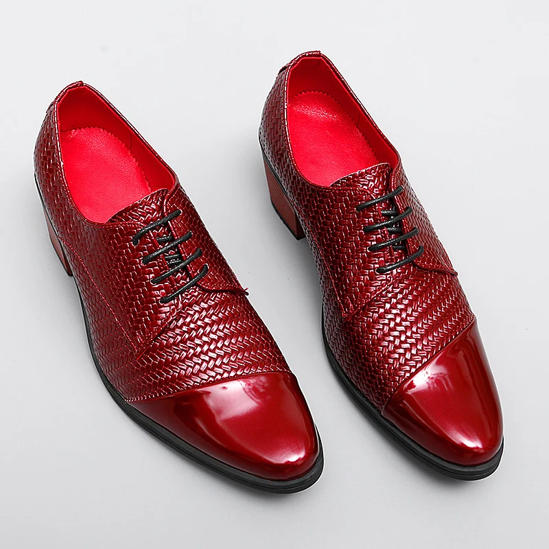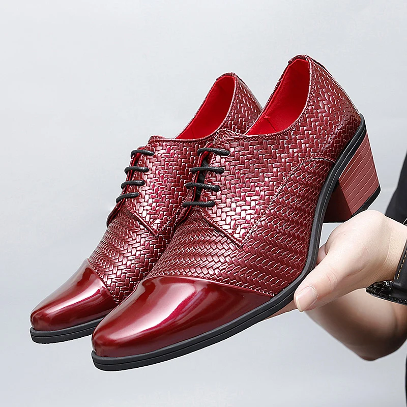 Men's Leather Shoes Banquet Dress Shoes Formal Occasions Men's Business Leather Shoes Office Red High Heels Pointed Shoes