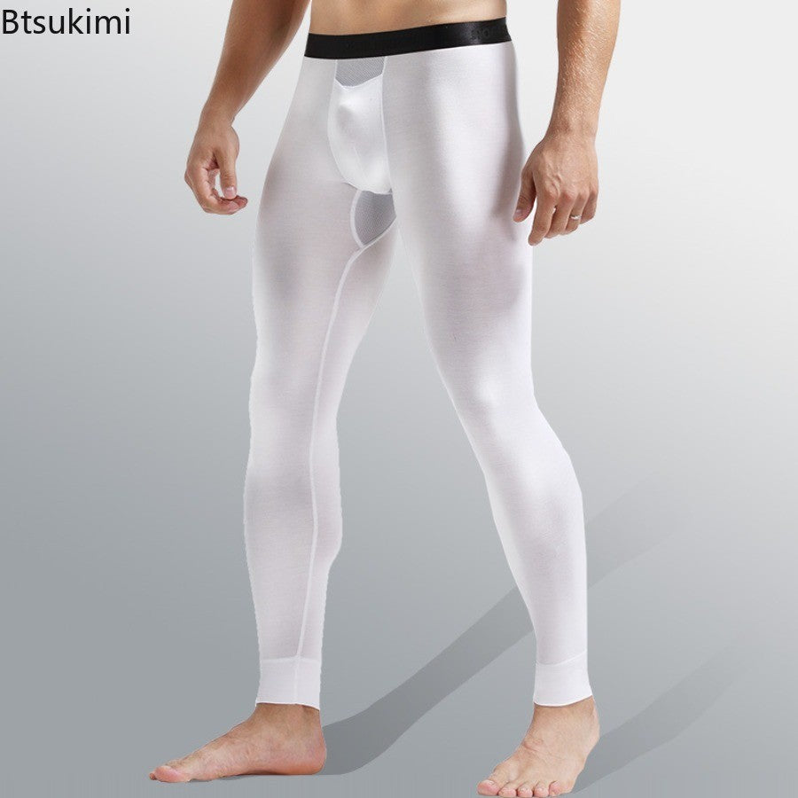 Men's Long Johns Ice Silk Mesh Perspiration Thermal Pants Slim-fit Honeycomb Breathable Leggings Mens Winter Thermal Underwear