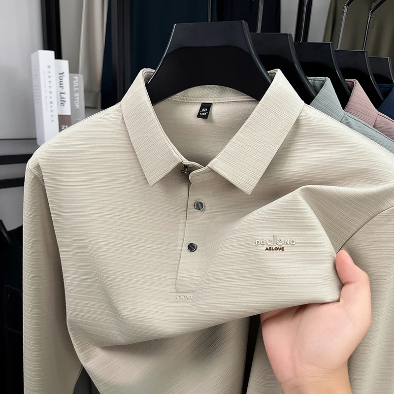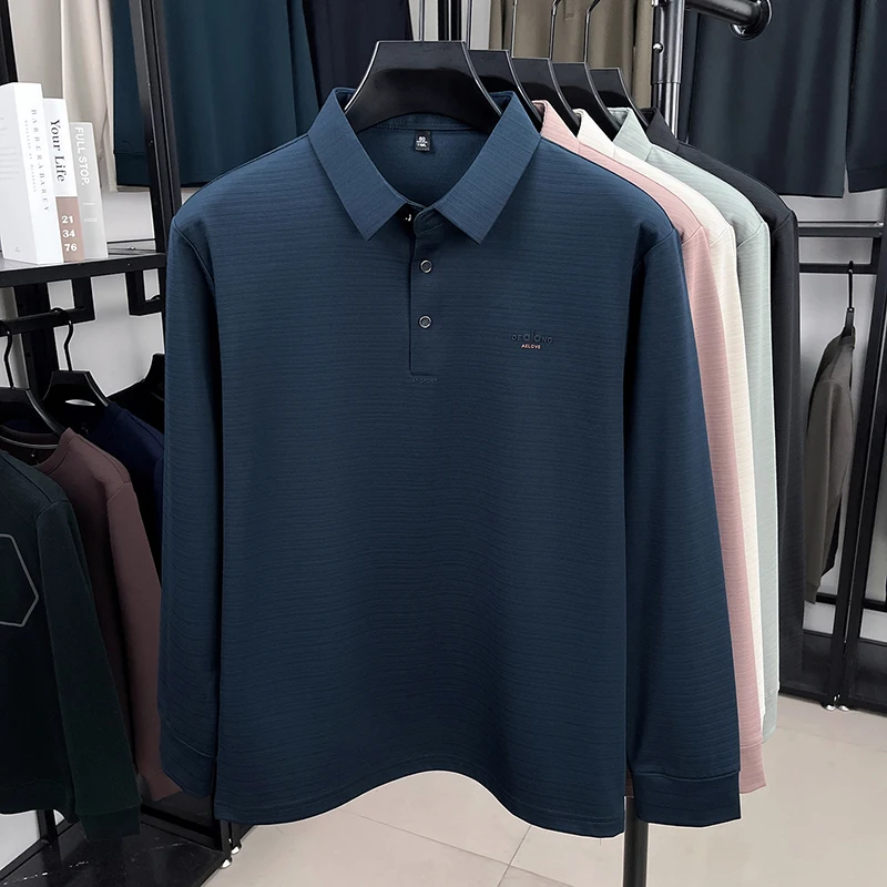 Men's Long sleeved T-shirt 2025 Spring and Autumn New Style Middle aged Collar Loose Polo Top