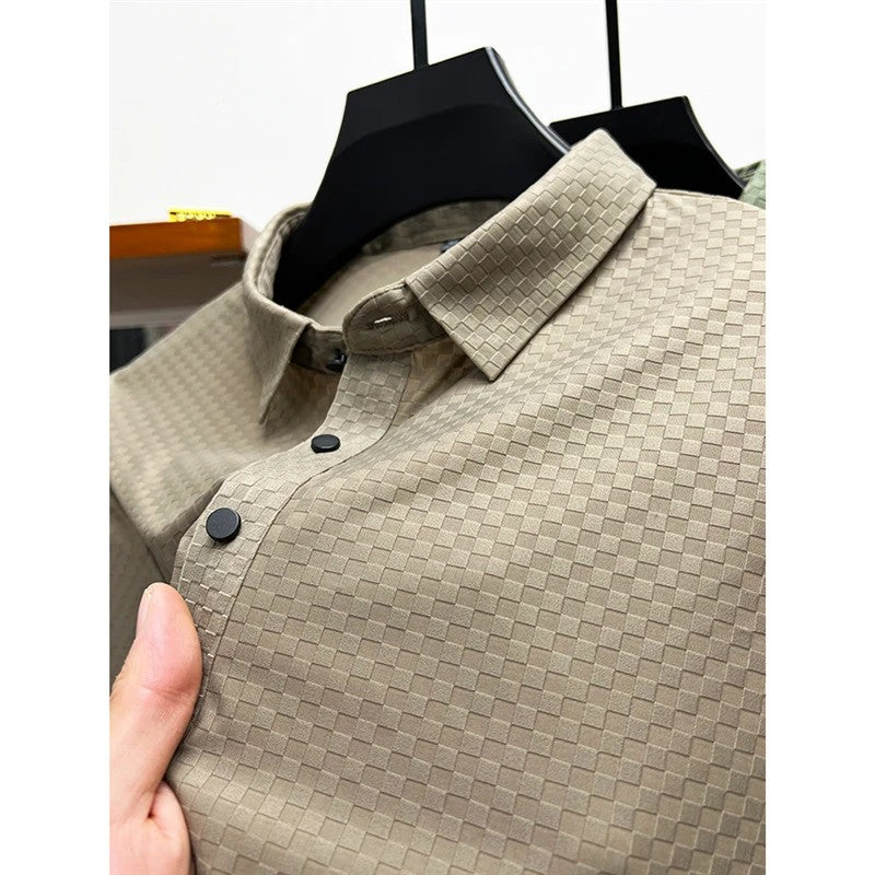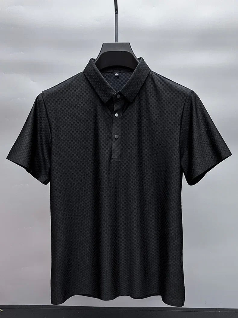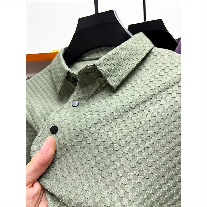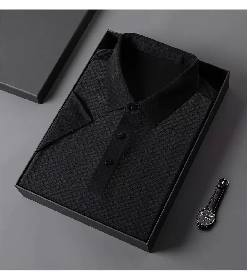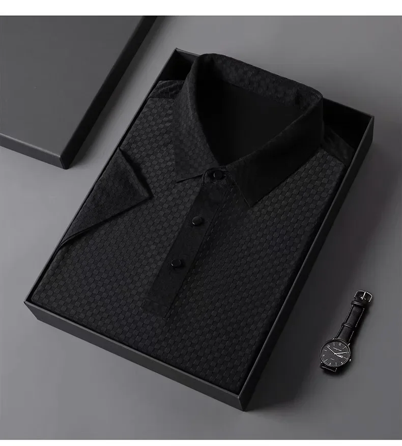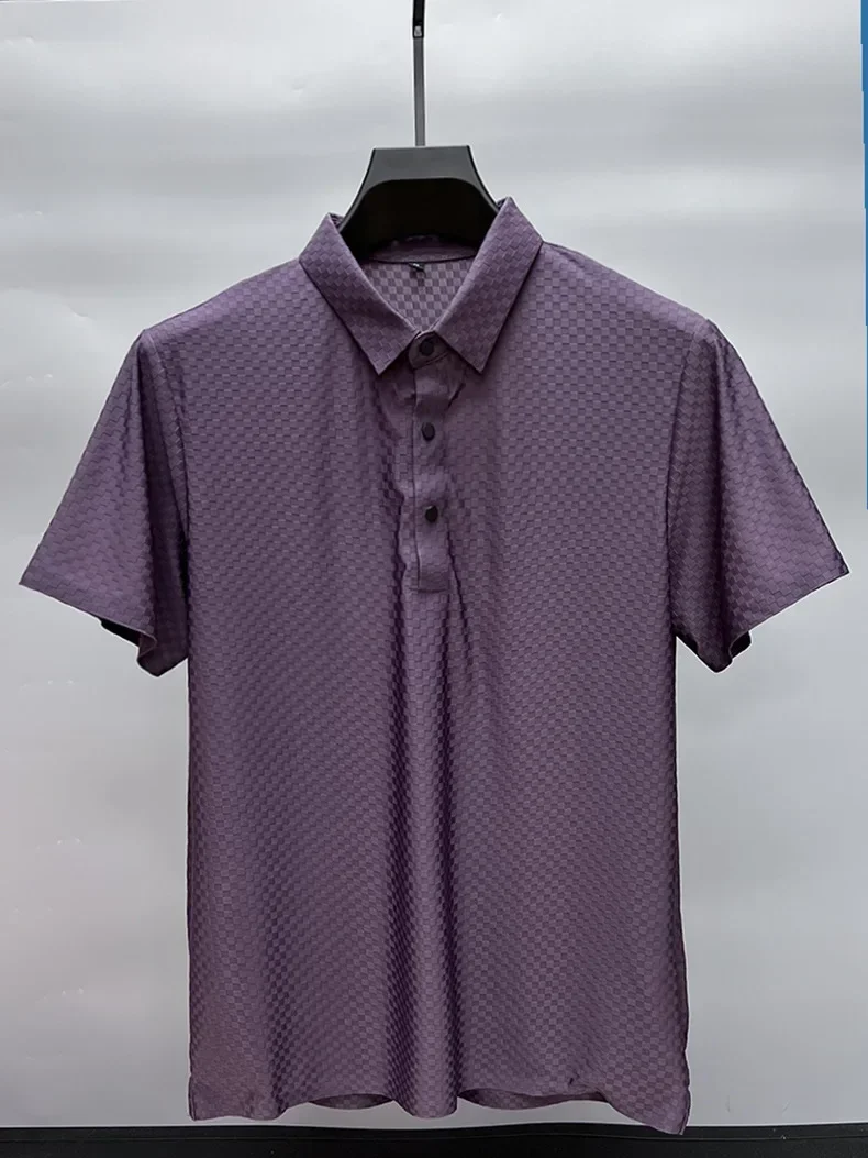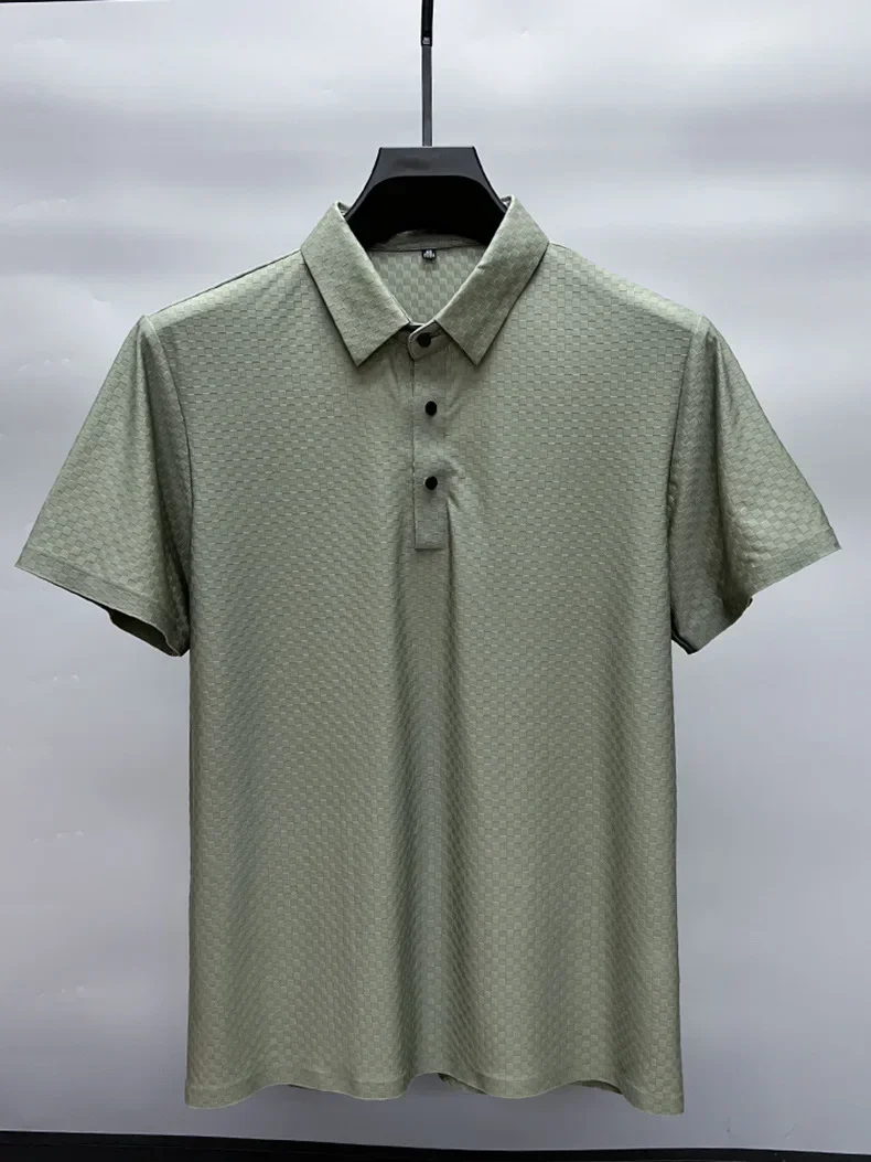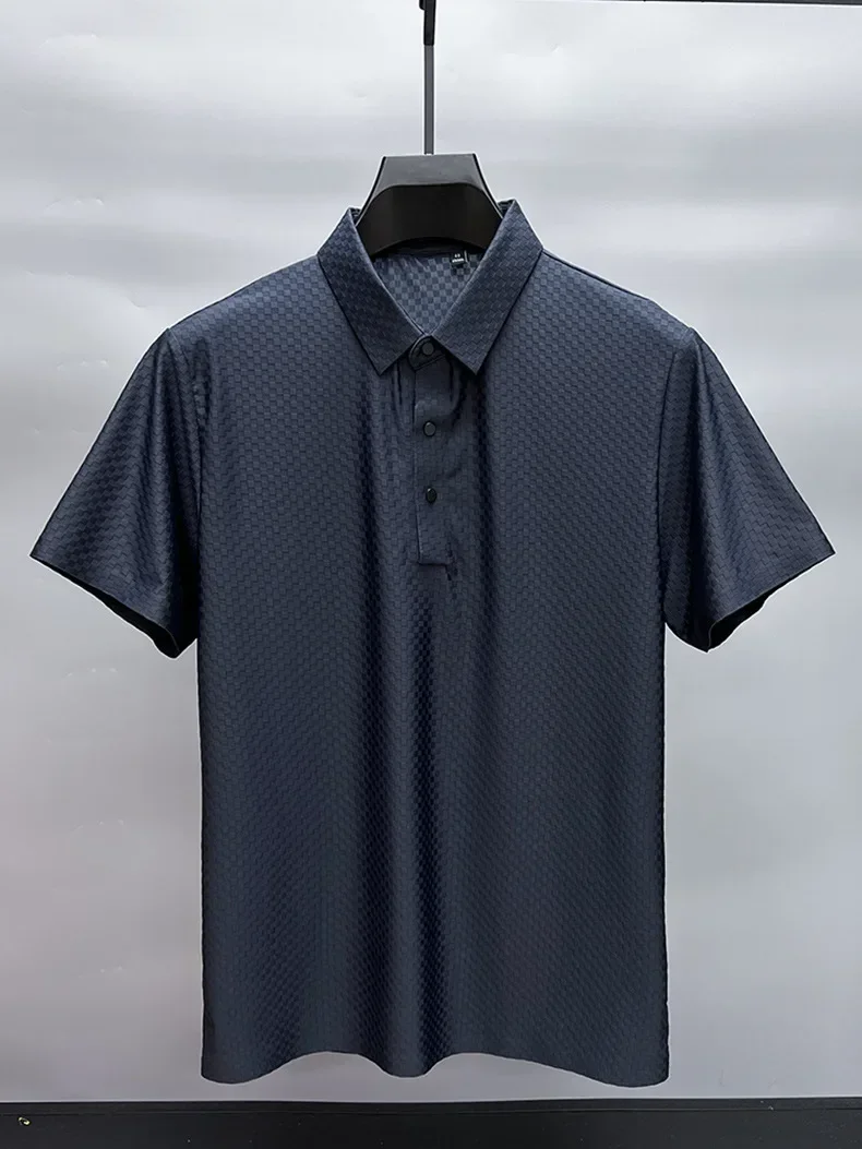 Men's Luxury and Fashionable Waffle Short Sleeve Polo Shirt, Lapel, Ice Silk, Breathable, Casual, Summer, 2024 New, High-End