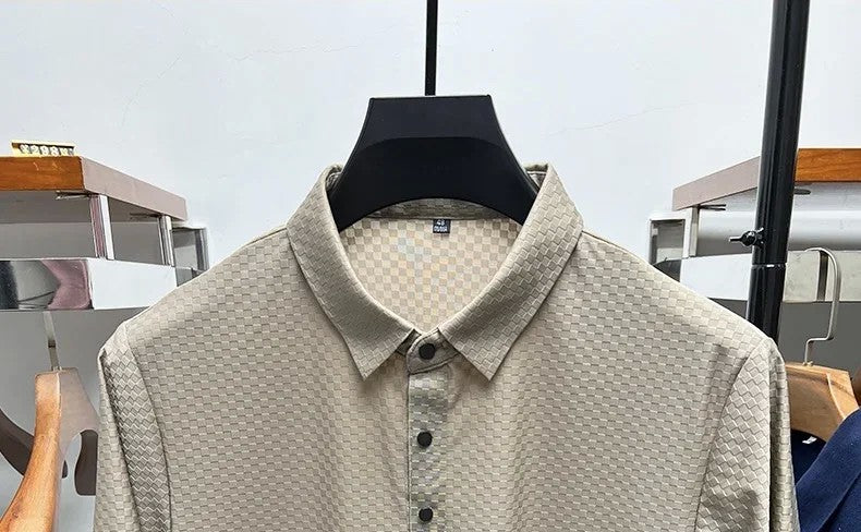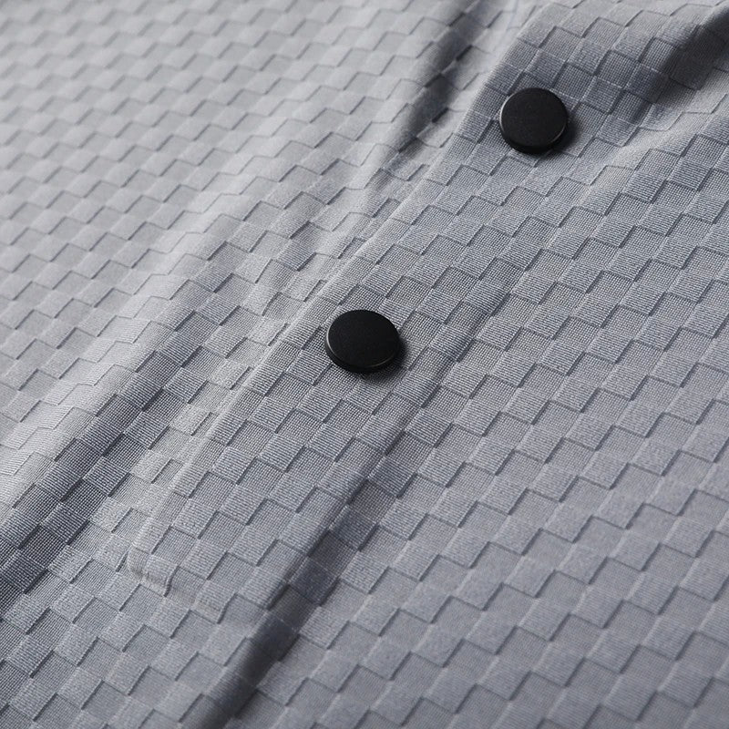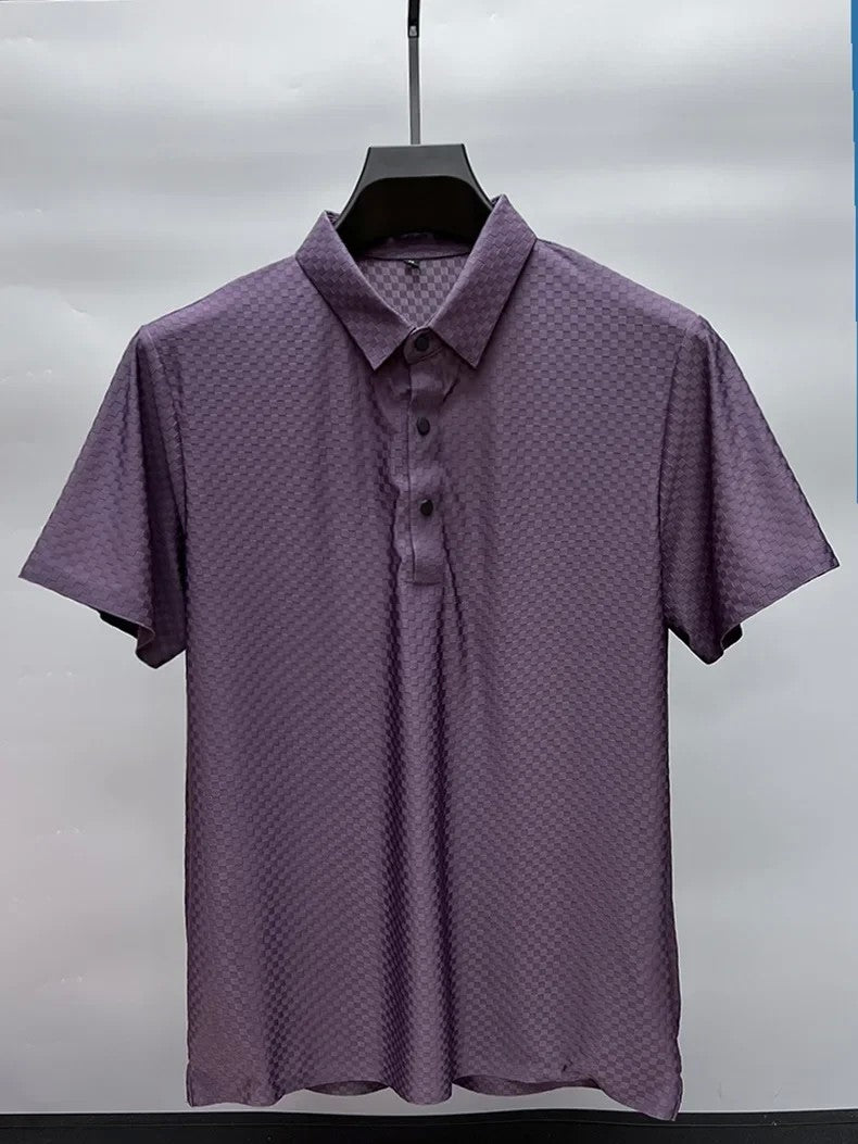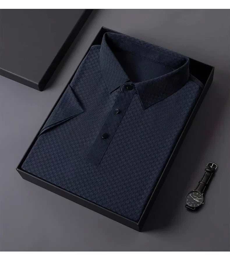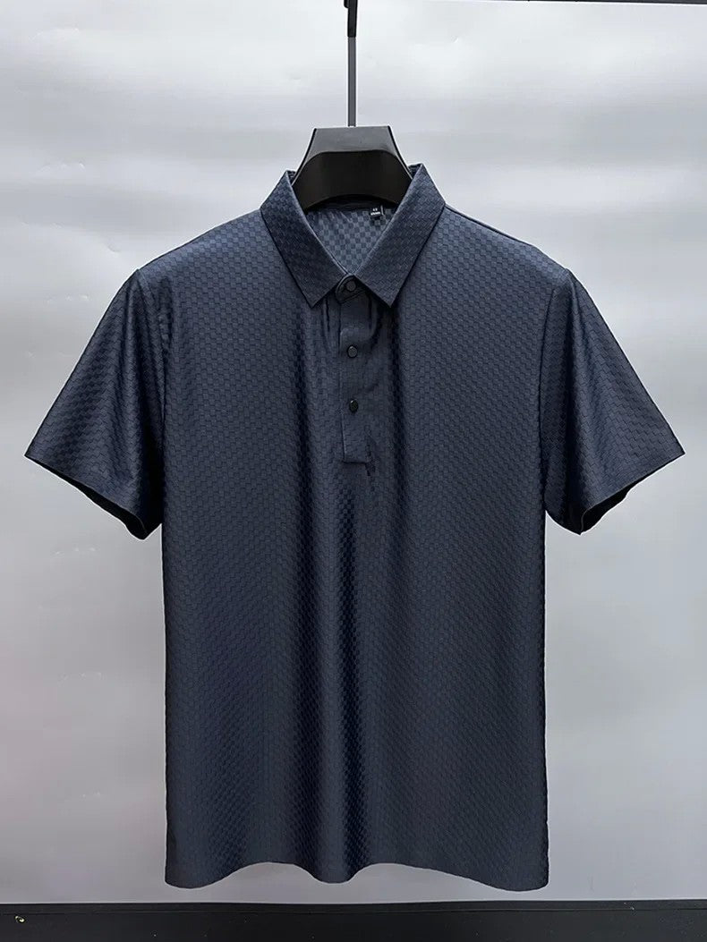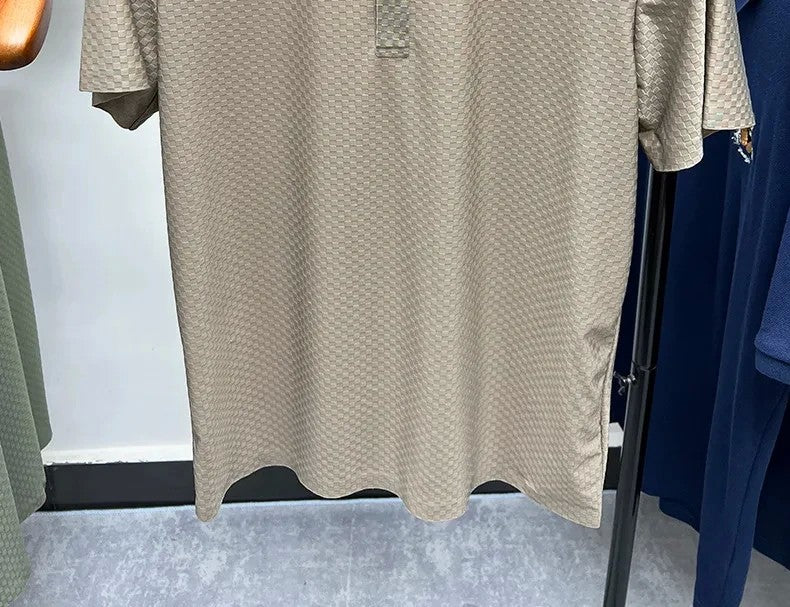 This men's polo shirt boasts a luxurious and fashionable waffle short sleeve design, perfect for those who want to stand out in style.