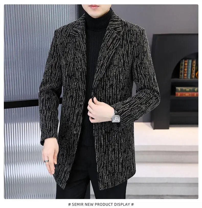 Men's Mid-Length Wool Overcoat - Heavy Blend Winter Trench Coat for Modern Style Wool Overcoat