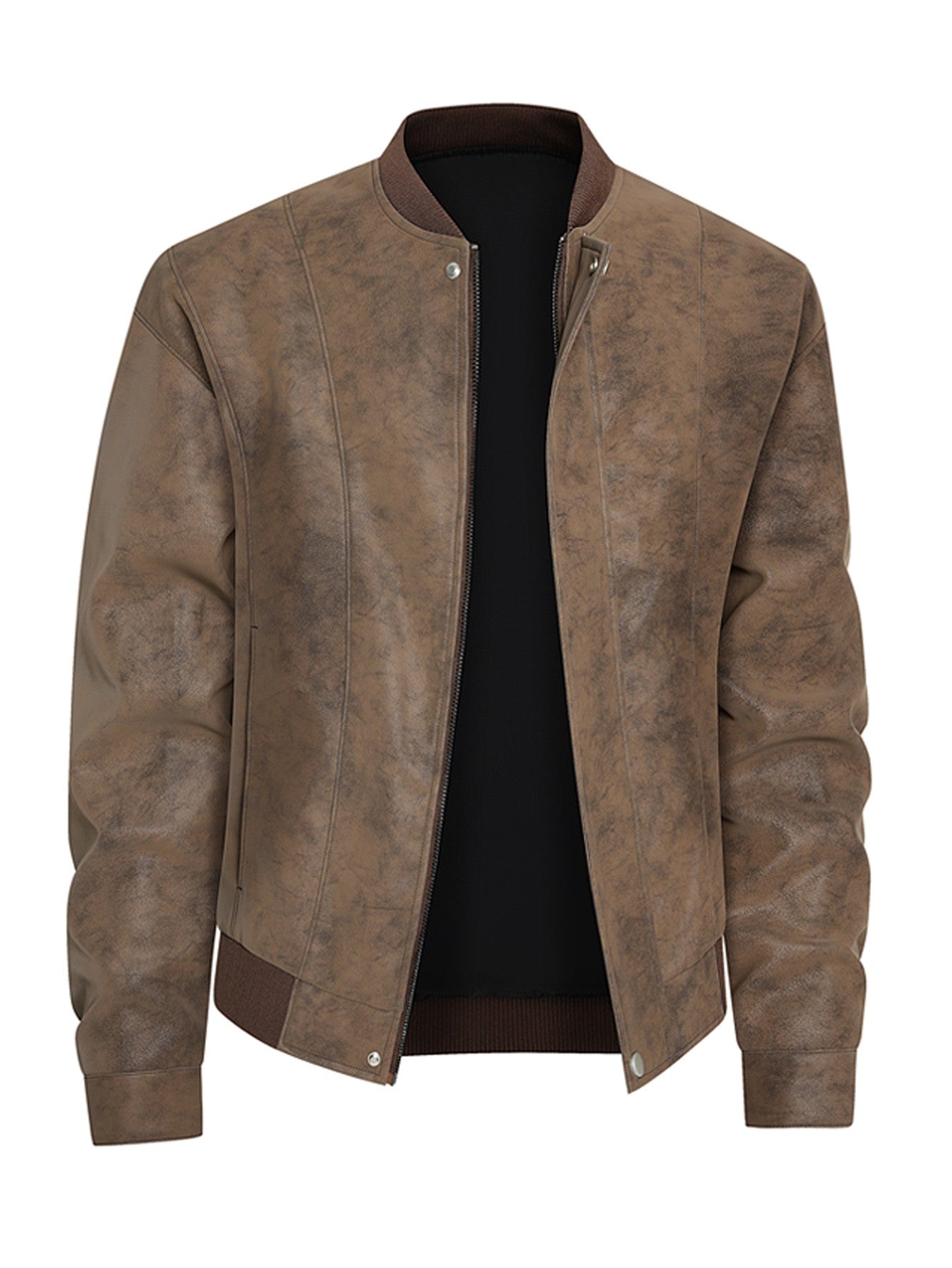 Men'S Motorcycle Jacket - Windproof Thermal Zip-Up Biker Coat with Stand Collar, Full-Zip Closure, Front Pockets - Lightweight N