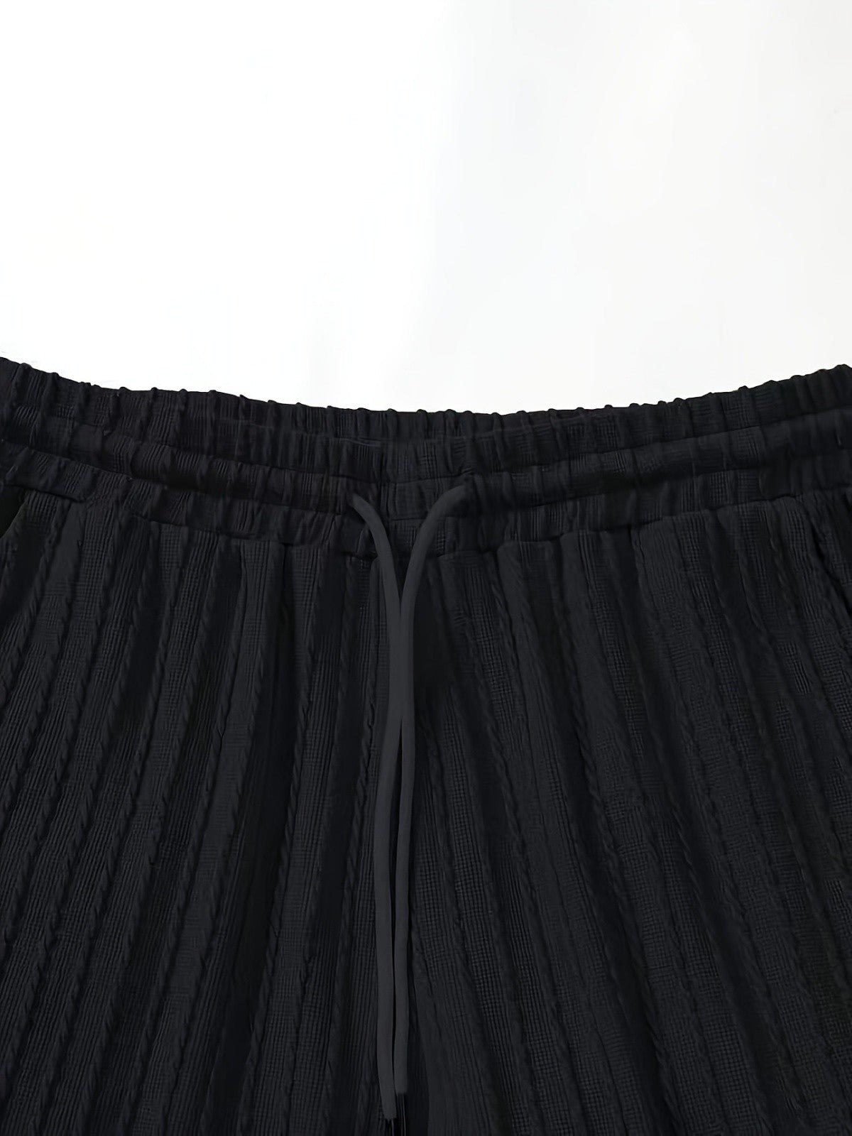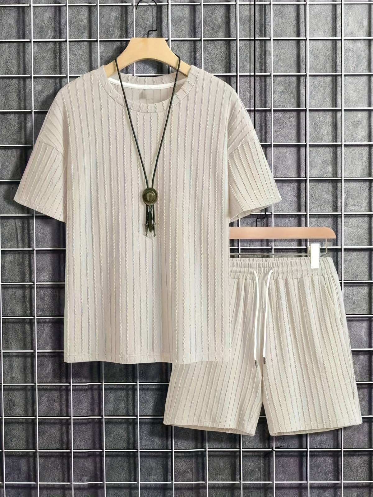 Men's new fashion summer sports solid color crew-neck vertical stripe T-shirt shorts short-sleeved suit Loose two-piece set