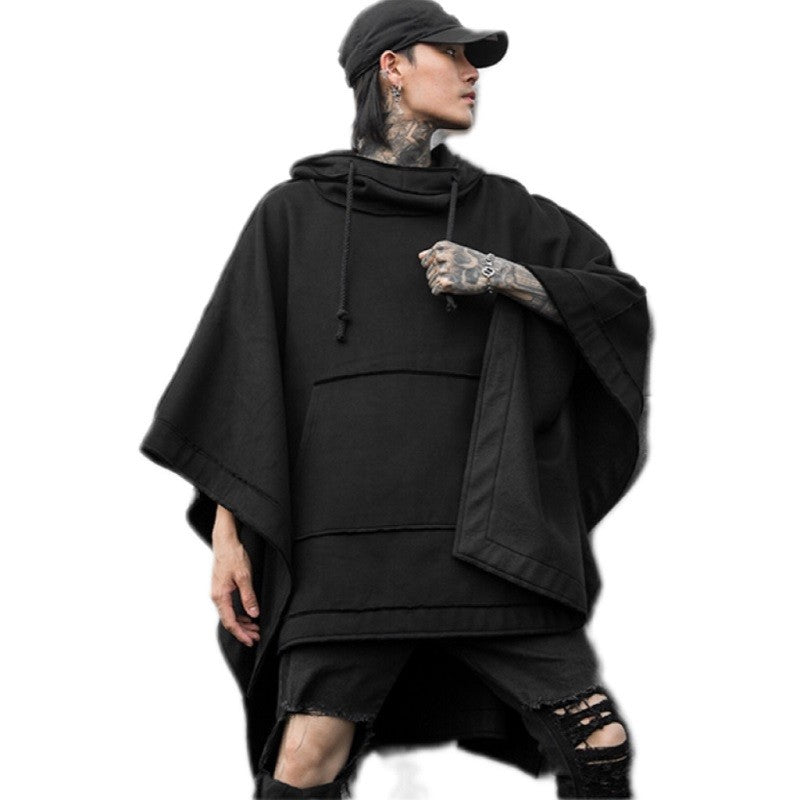 Men's Personality Cape Cape Long Bat Sleeve Coat Cape Hoodie Short Front Long Back
