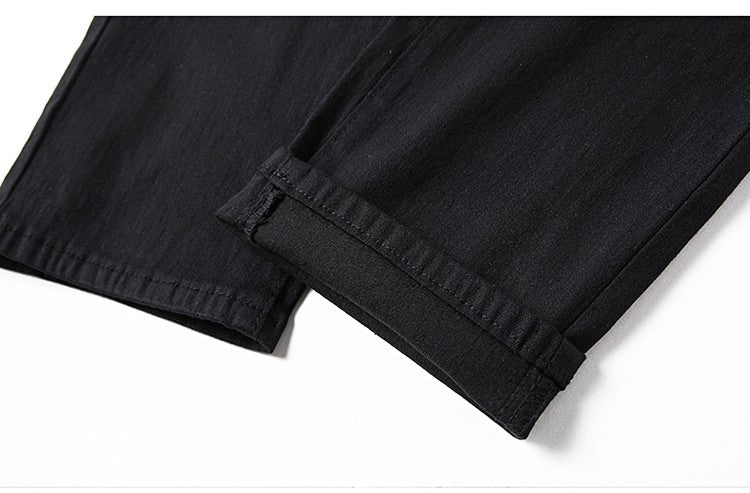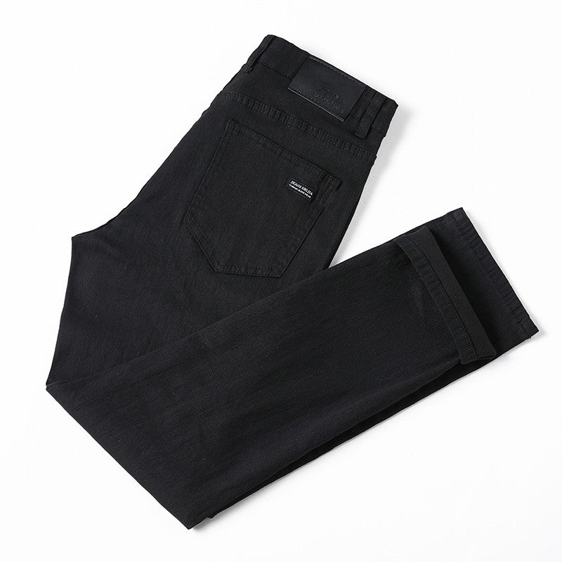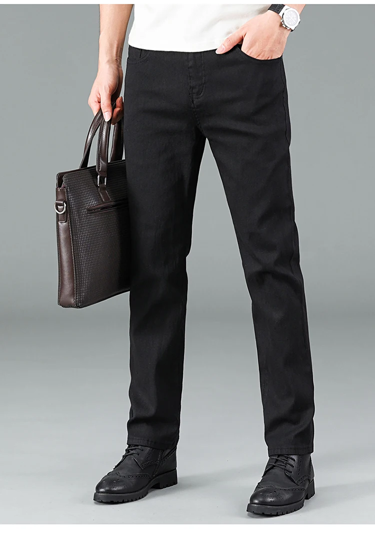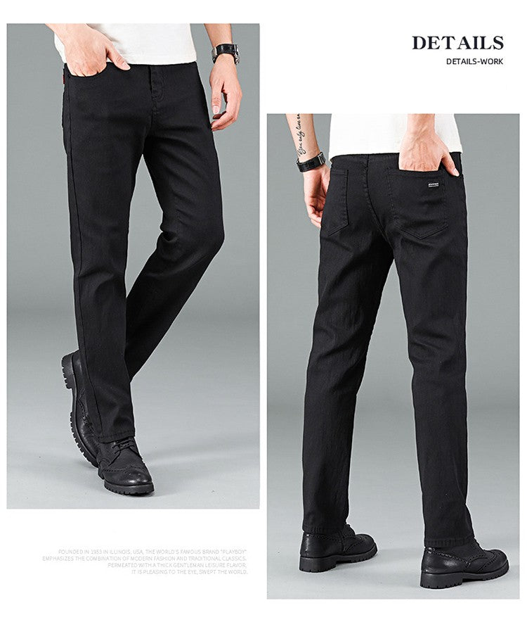 Men's pure black jeans Korean version trendy straight fit pants men's comfortable and elastic classic business jeans
