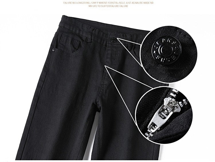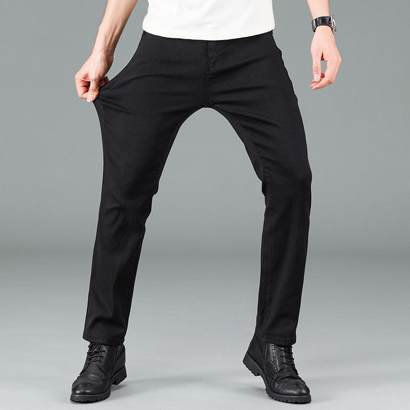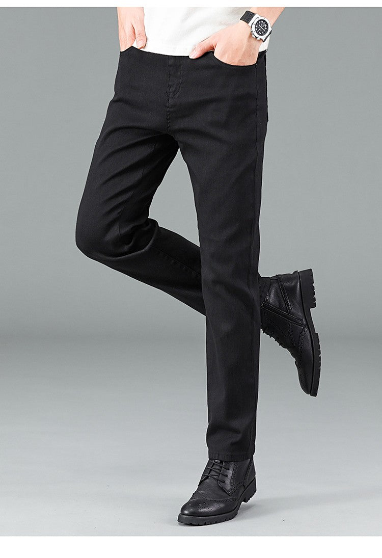 Men's pure black jeans Korean version trendy straight fit pants men's comfortable and elastic classic business jeans