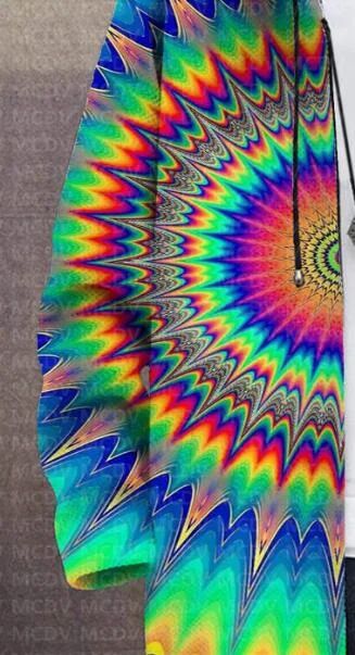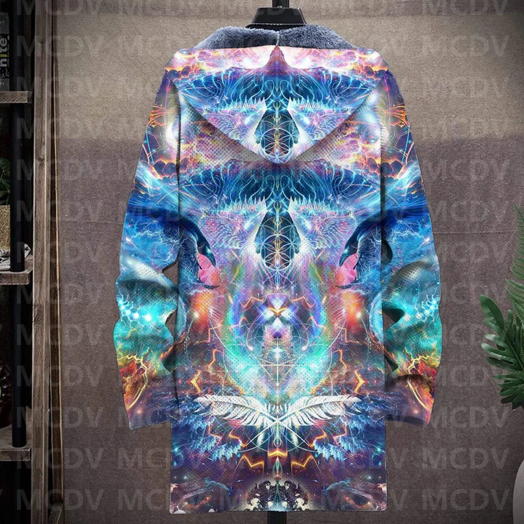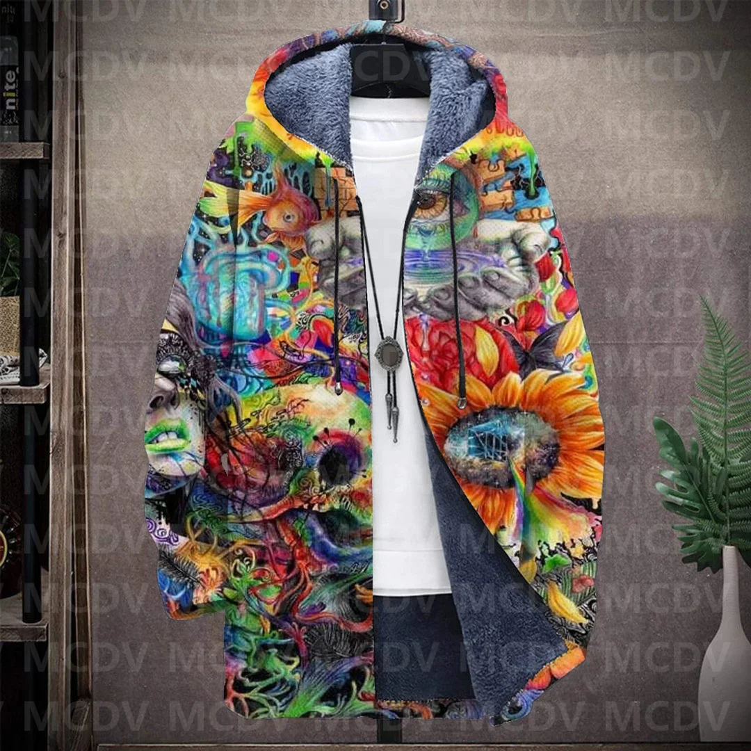 Men's Retro Print Plush Thick Long-Sleeved Coat Cardigan Psychedelic 3D Prined Fleece Hooded Overcoat Unisex Thick Warm Jacket