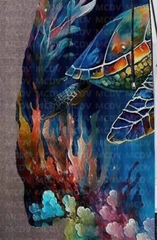 Men's Retro Print Plush Thick Long-Sleeved Coat Cardigan Sea Turtle 3D Prined Fleece Hooded Overcoat Unisex Thick Warm Jacket