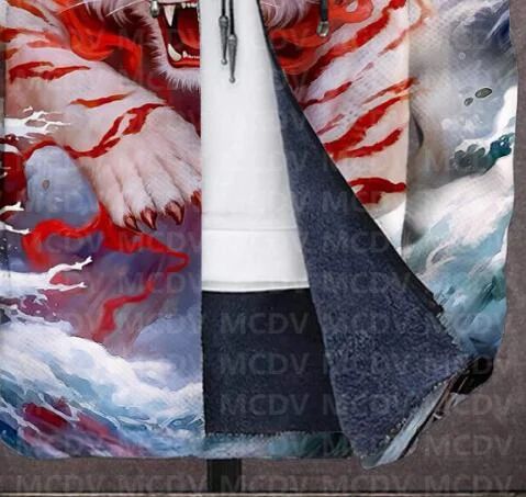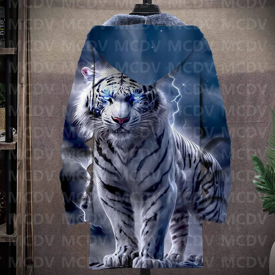Men's Retro Print Plush Thick Long-Sleeved Coat Cardigan Tiger 3D Prined Fleece Hooded Overcoat Unisex Thick Warm Jacket