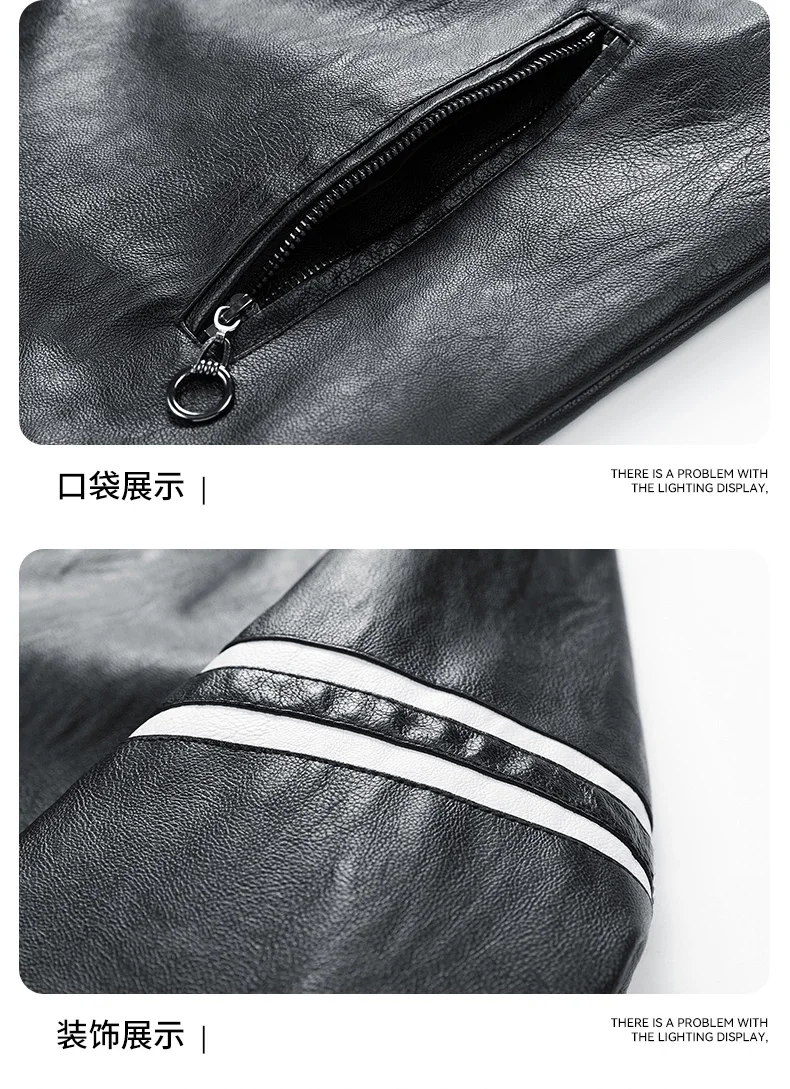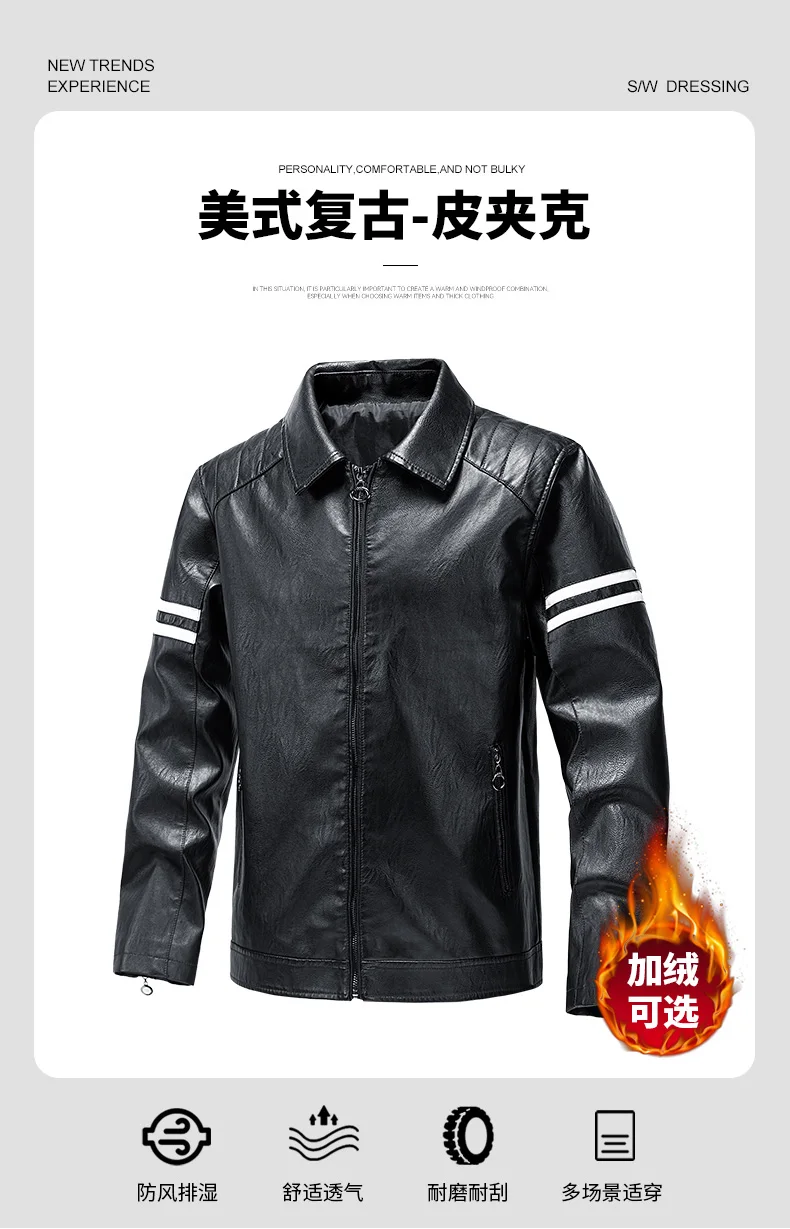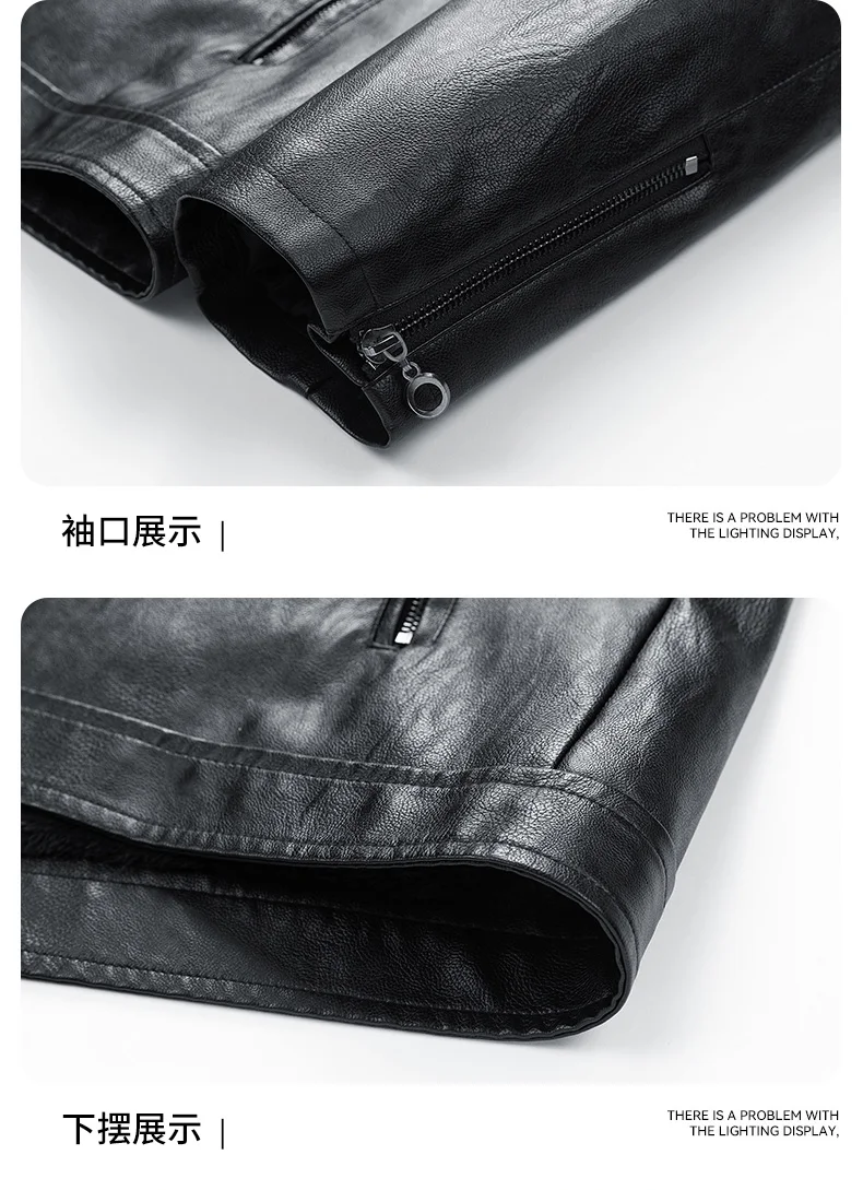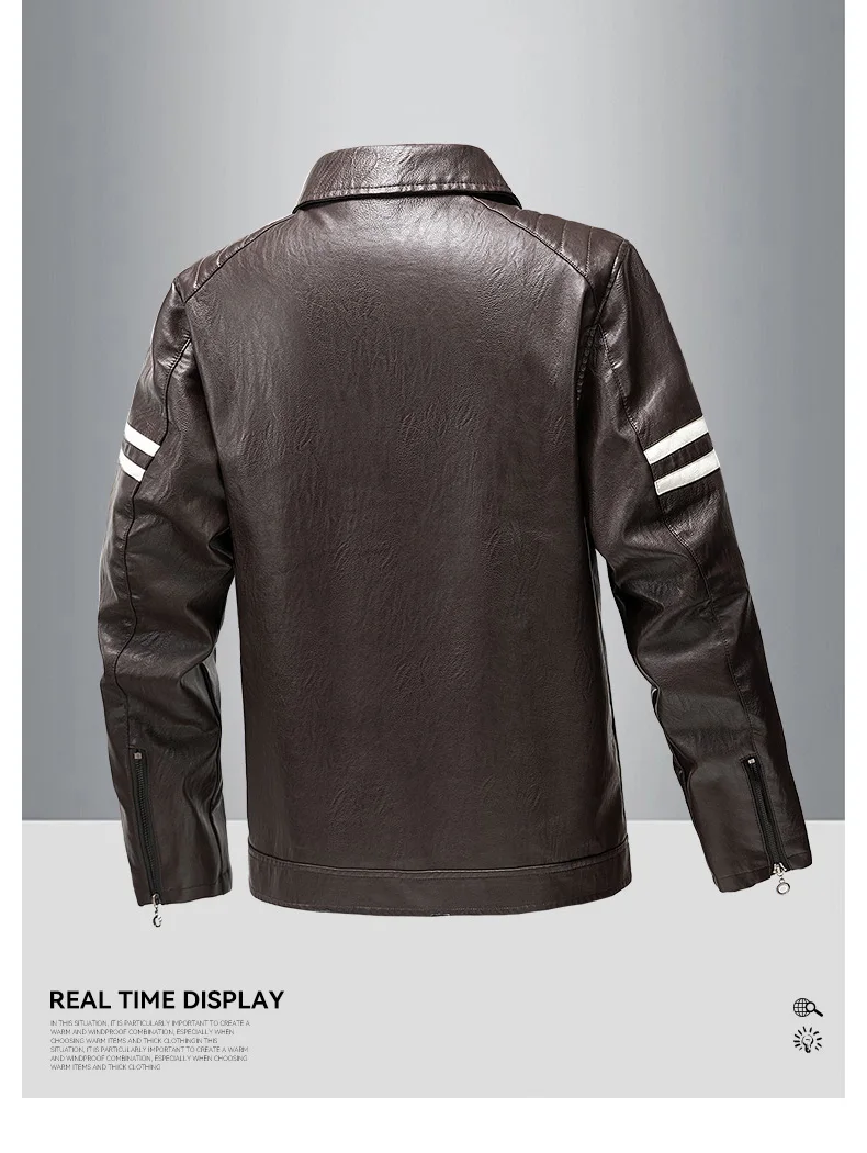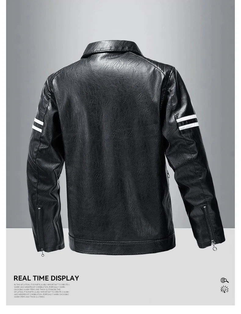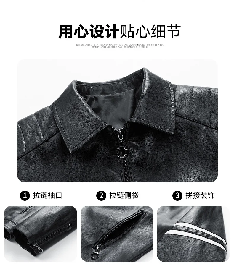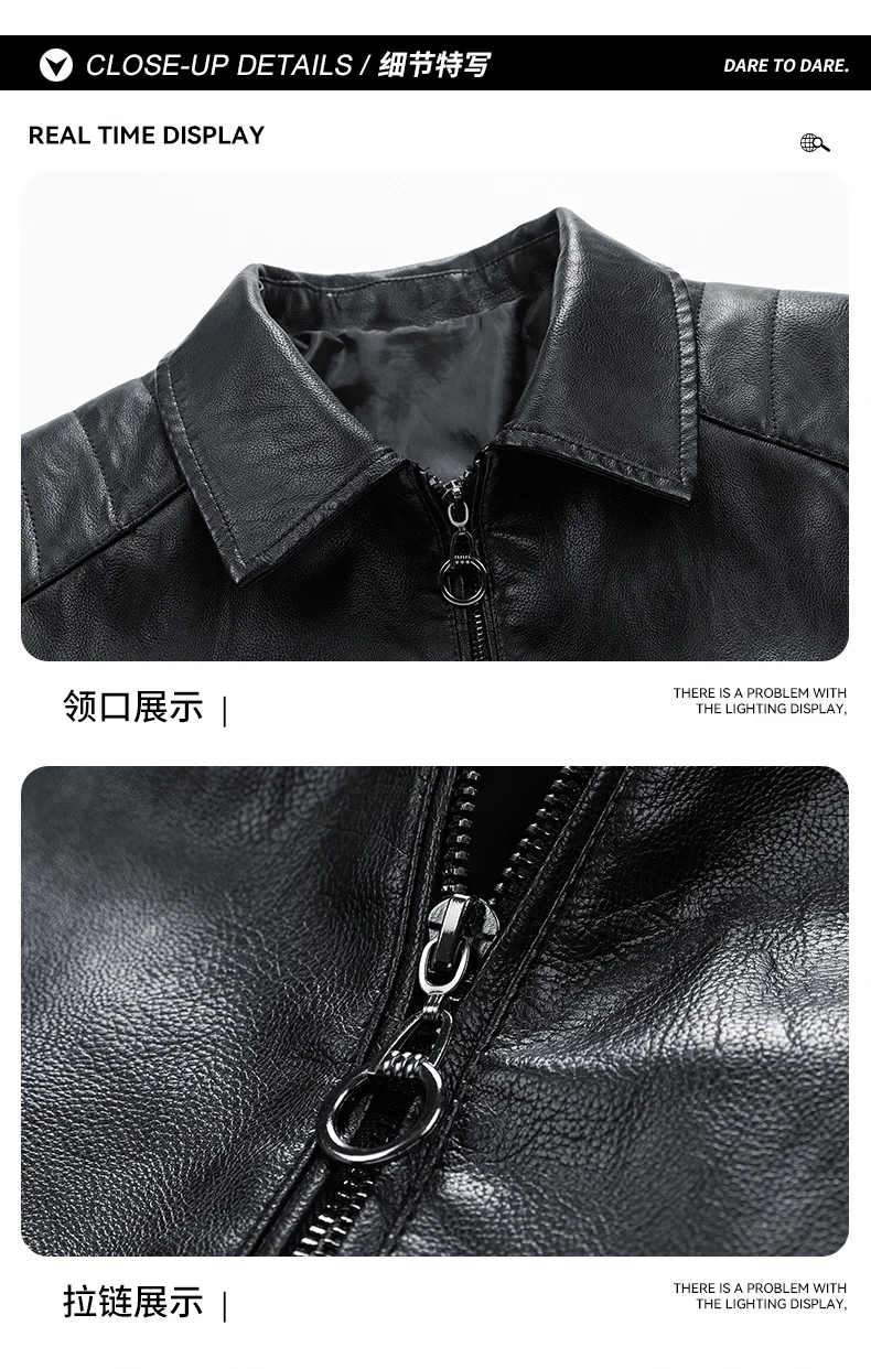 Men's Season Pu Motorcycle Leather Jacket Solid Color Lapels Jacket Coats Fashion Men's Top