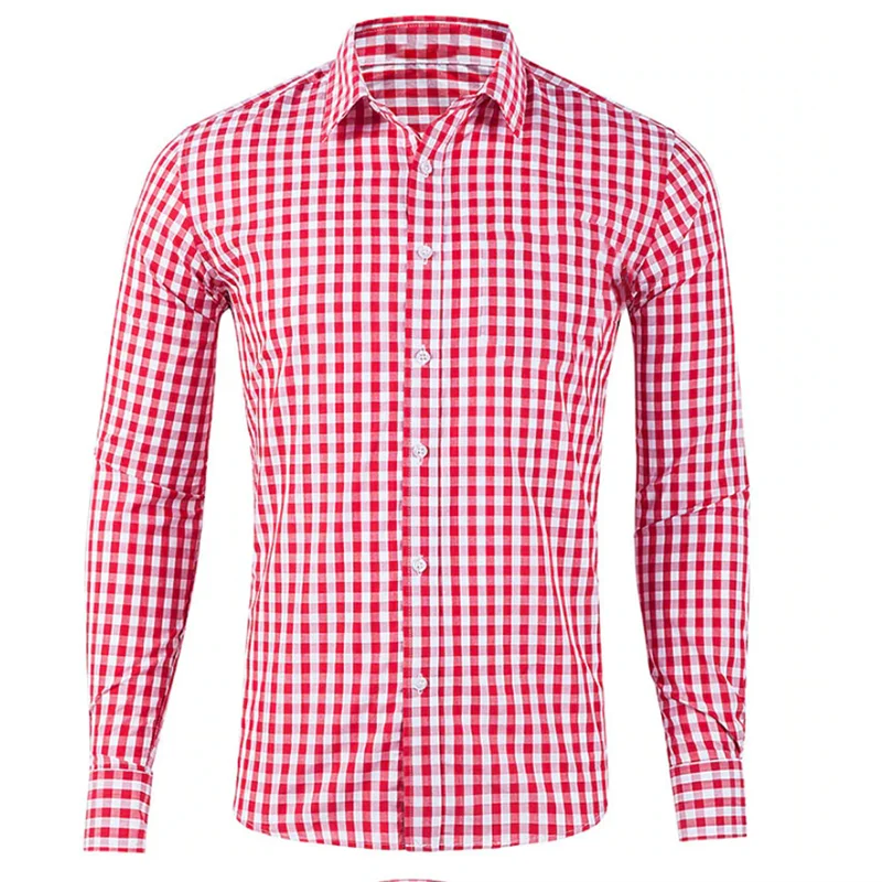 Men's shirt button-up shirt red blue long sleeve plaid/check lapel street resort printed clothing fashion casual Hawaii 5XL