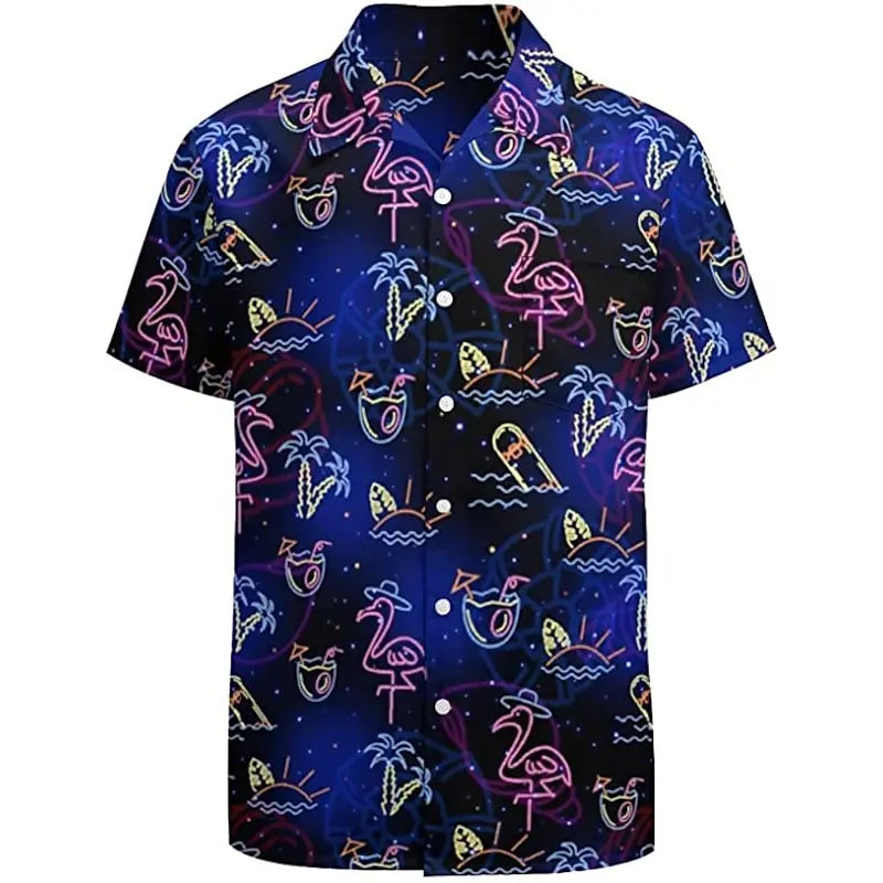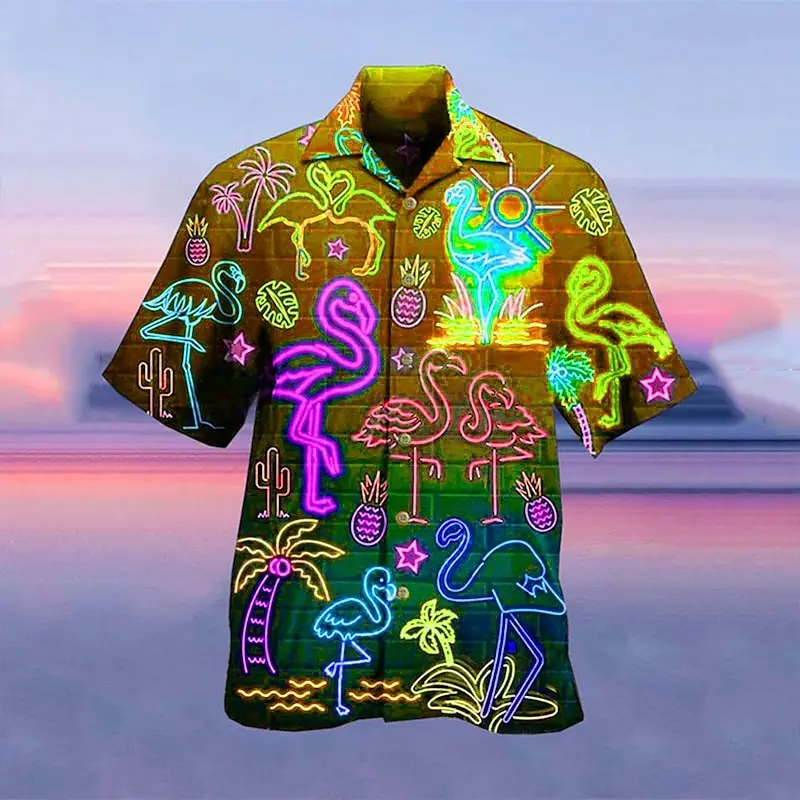 Men's shirt Hawaiian shirt camp T-shirt fluorescent 3D printing street casual short-sleeved clothing fashionable casual