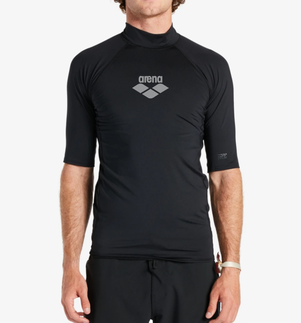 Men's Short Sleeve Surf Tee Arch Wave RIGHTTRACK Performance Tight-fitting Swimwear UPF 50+ Rashguard Vacation Beachwear