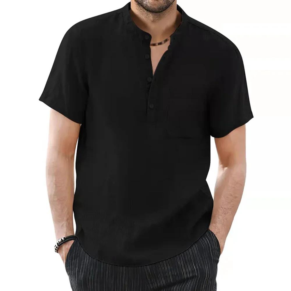 Men's Short Sleeve T-shirt Cotton and Linen Casual Men T-shirt Solid Color Summer Shirt Male Cozy Breathable US Size