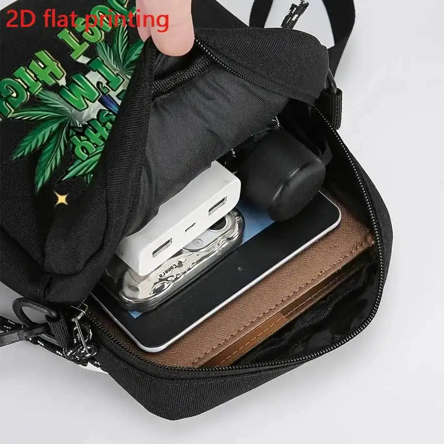 Men's Shoulder Bag with Leaf Design "Not Cheap Just Rich" Slogan Fashion Portable Male Small Crossbody Bags Leisure Phone Bag