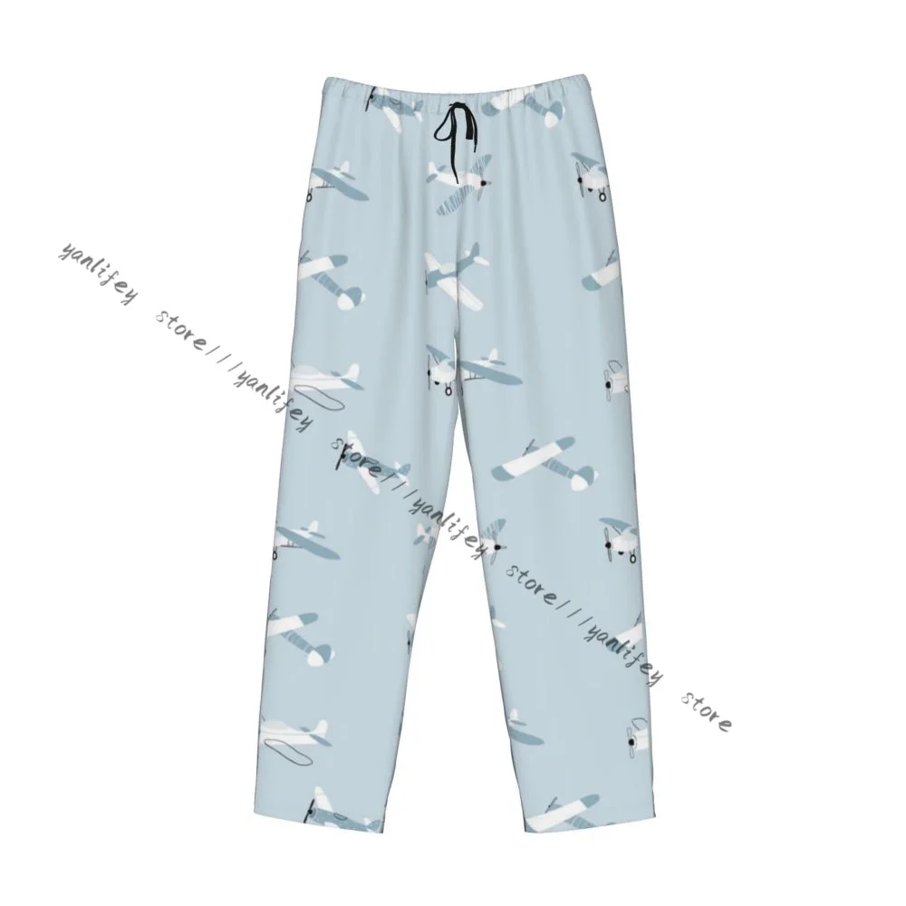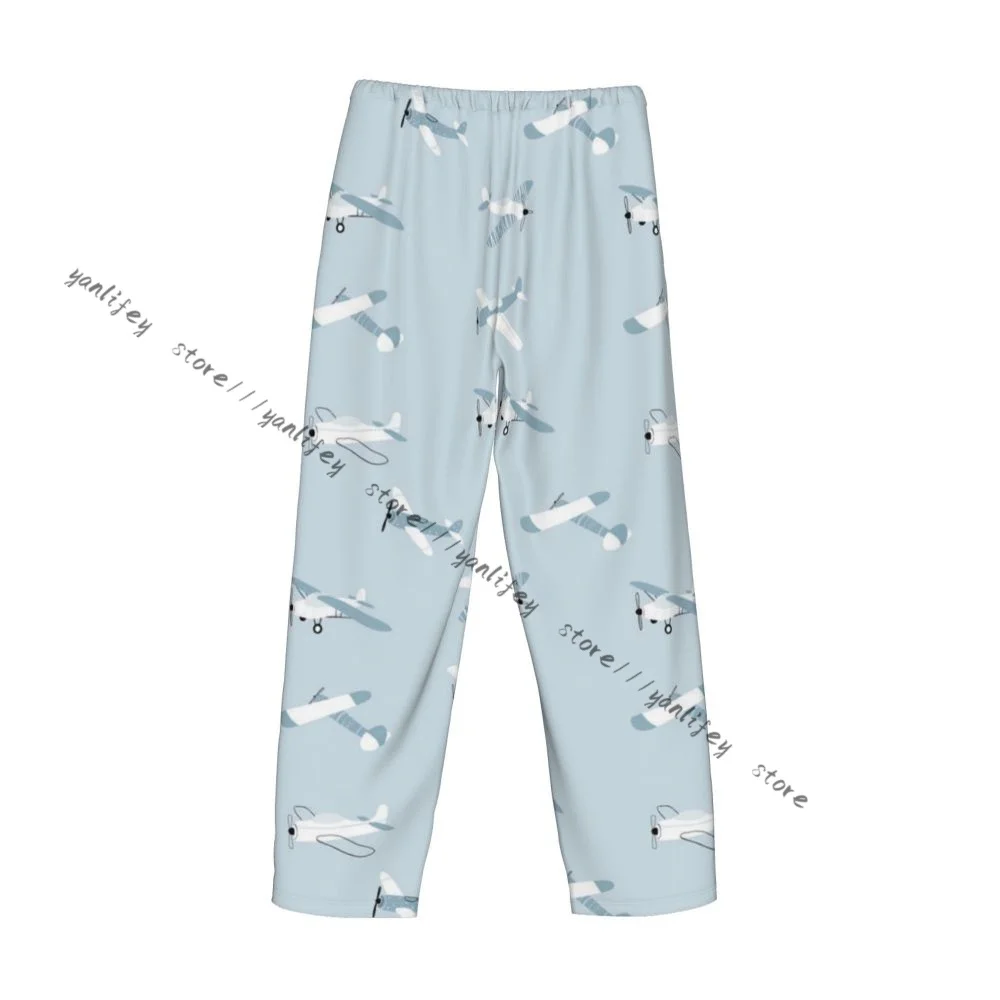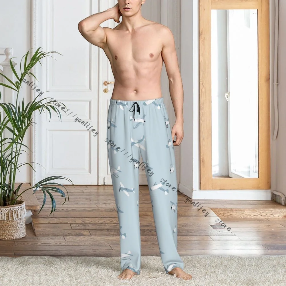 Men's Sleepwear Loose Sleep Pants Pajamas Cute Airplanes Long Lounge Bottoms Casual Homewear