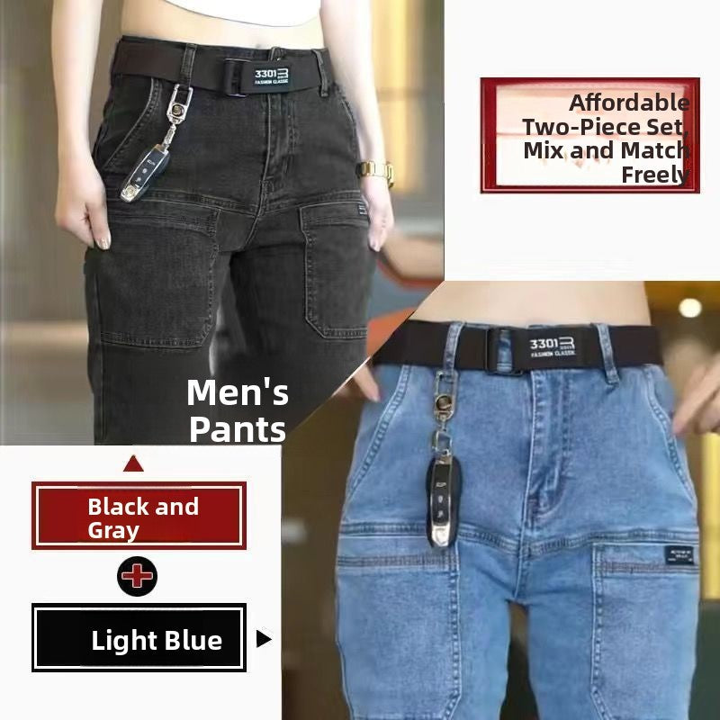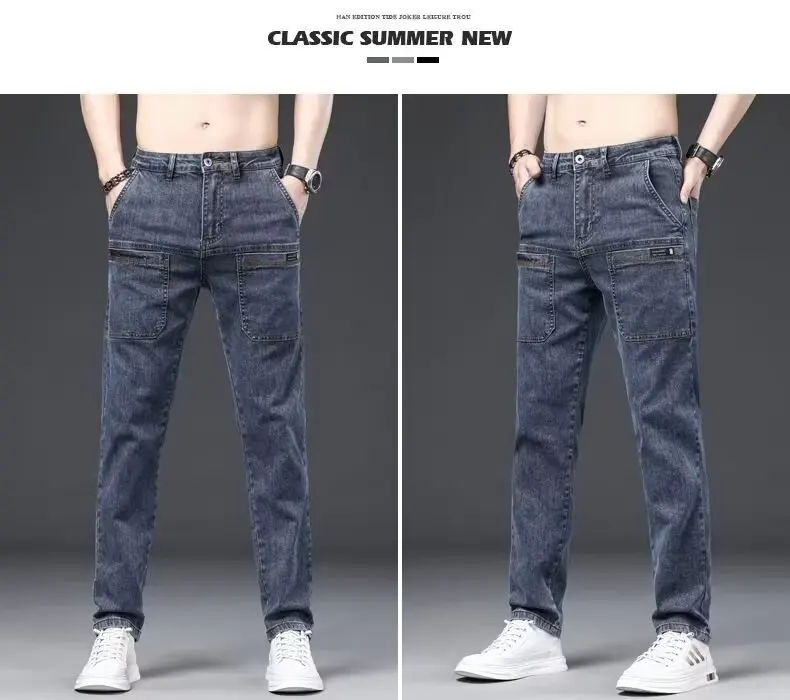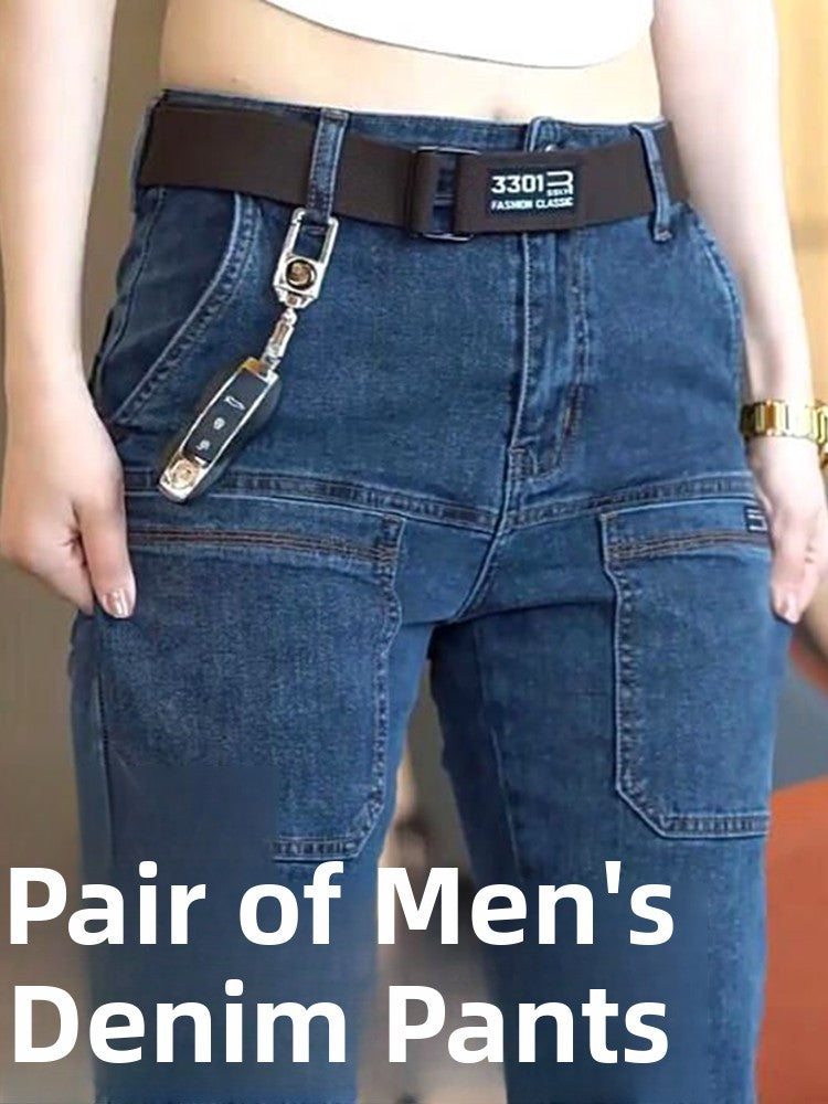 This pair of jeans features multiple pockets, providing ample storage space for your essentials while maintaining a sleek look.