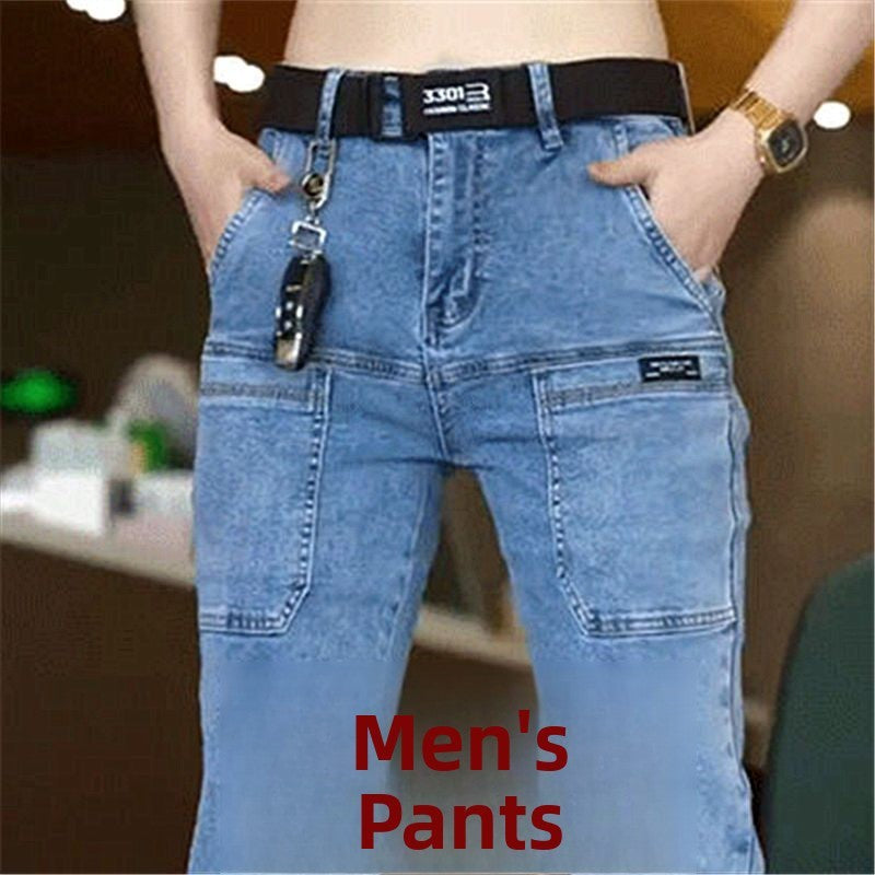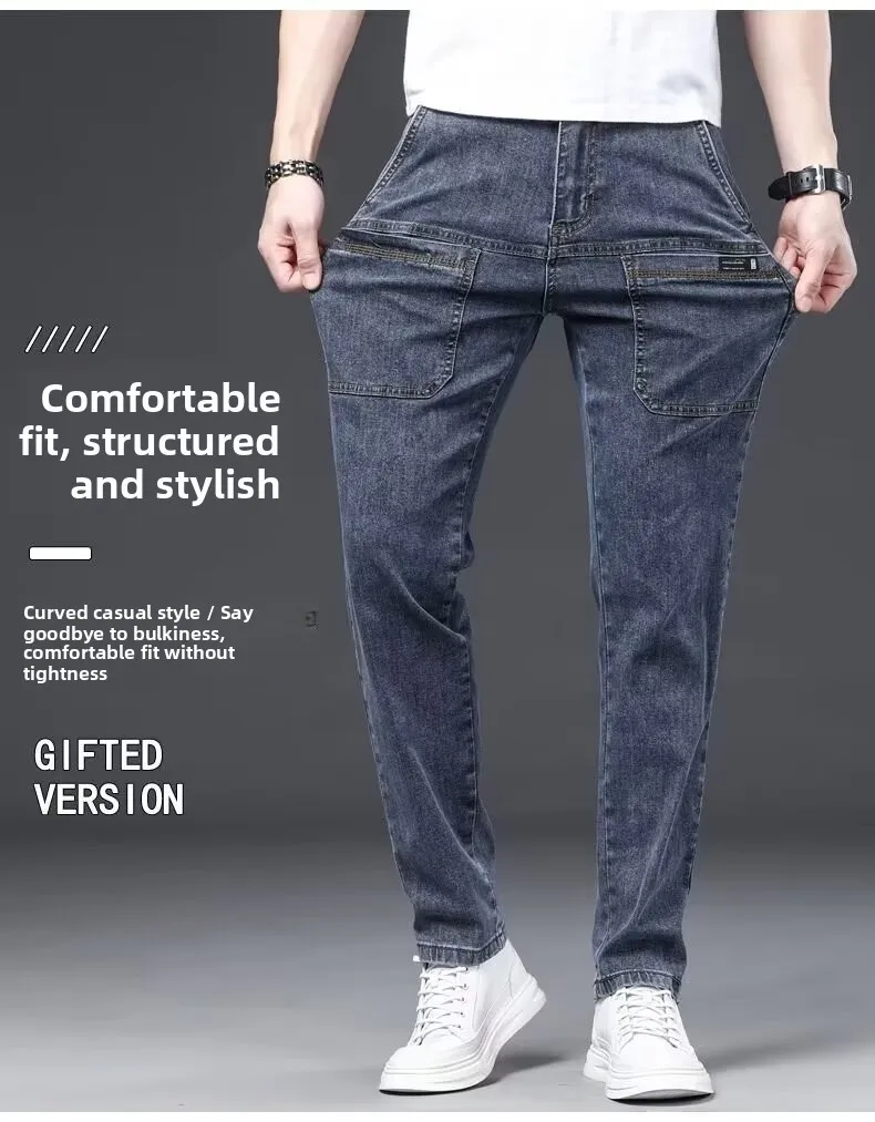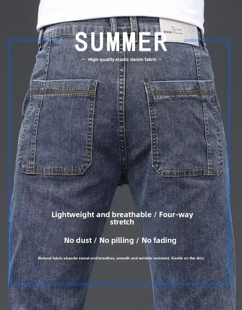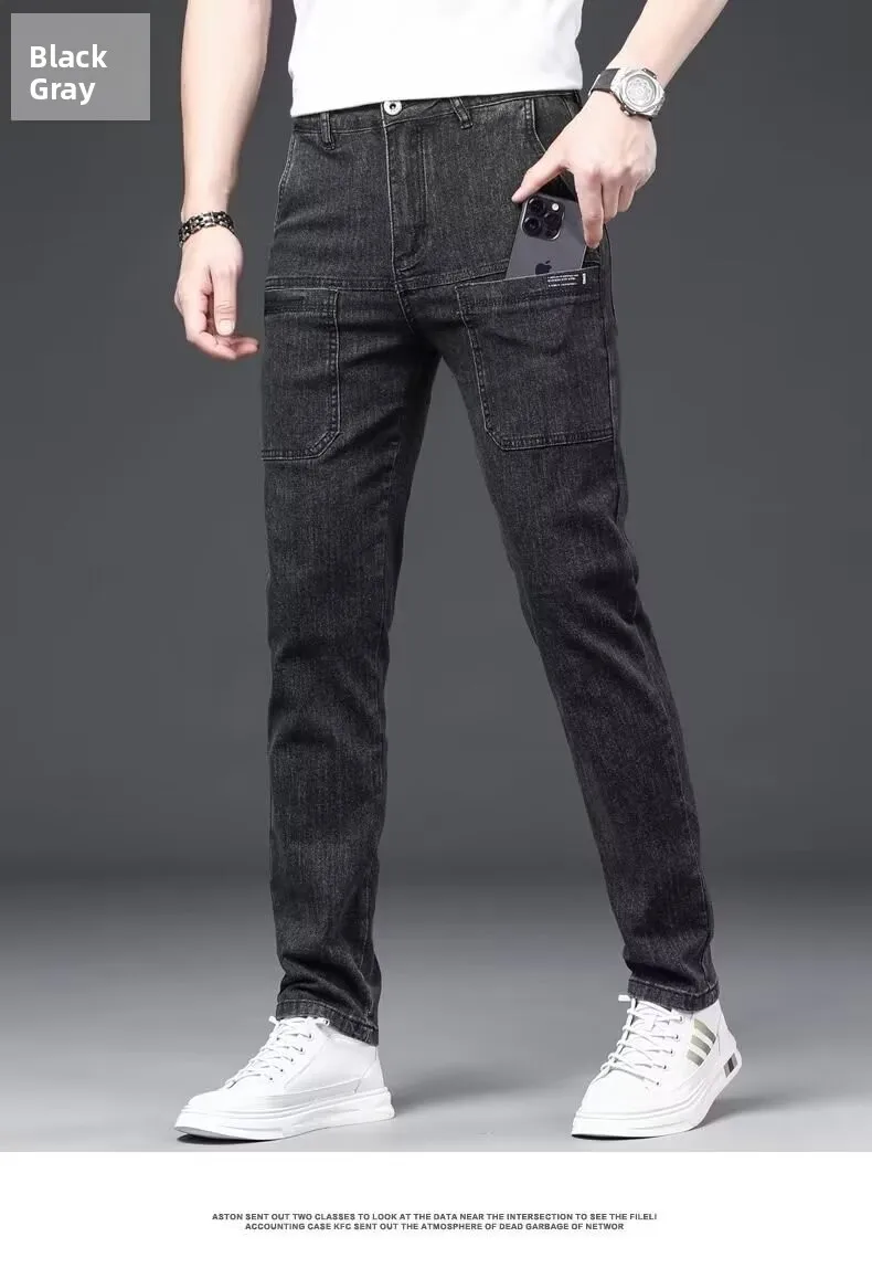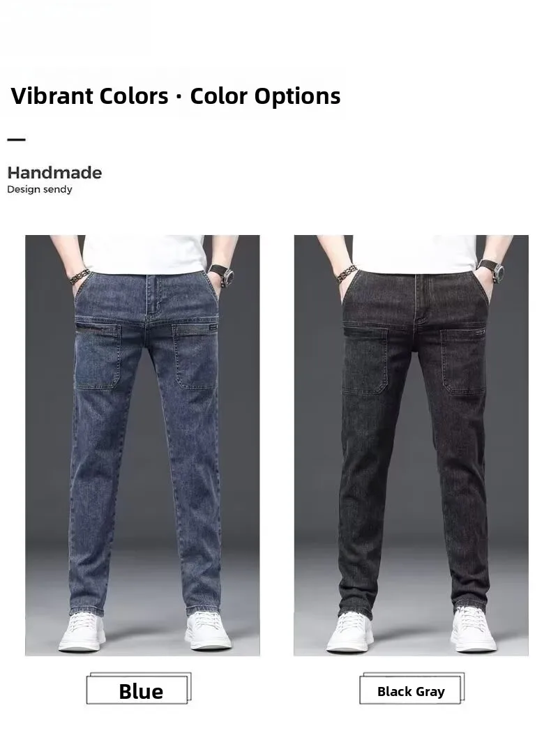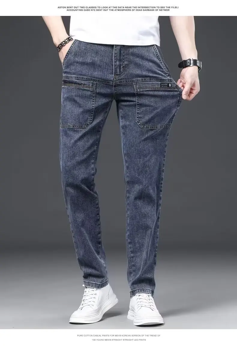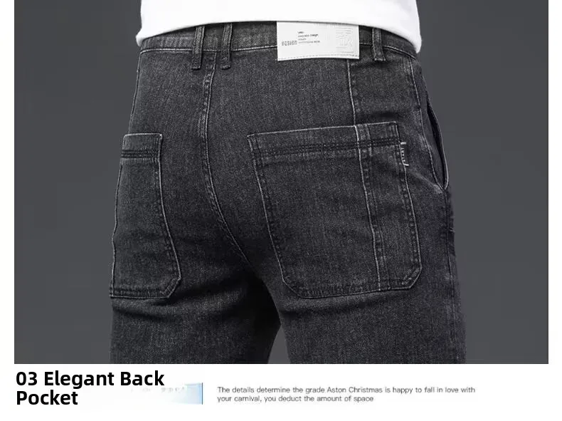 Men's Slim Fit Straight Leg Denim Jeans Flame Retardant Stretch Autumn Thin Faionable Long Pants Casual Wear Youth Sle
