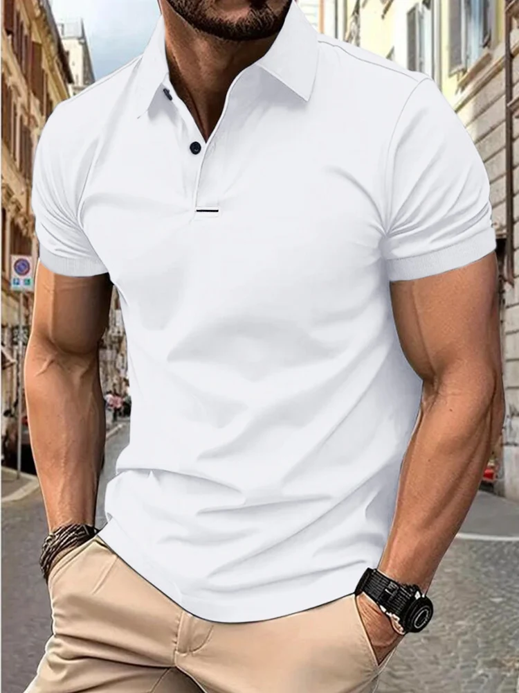 Men's solid color short-sleeved button-down lapel T-shirt casual top