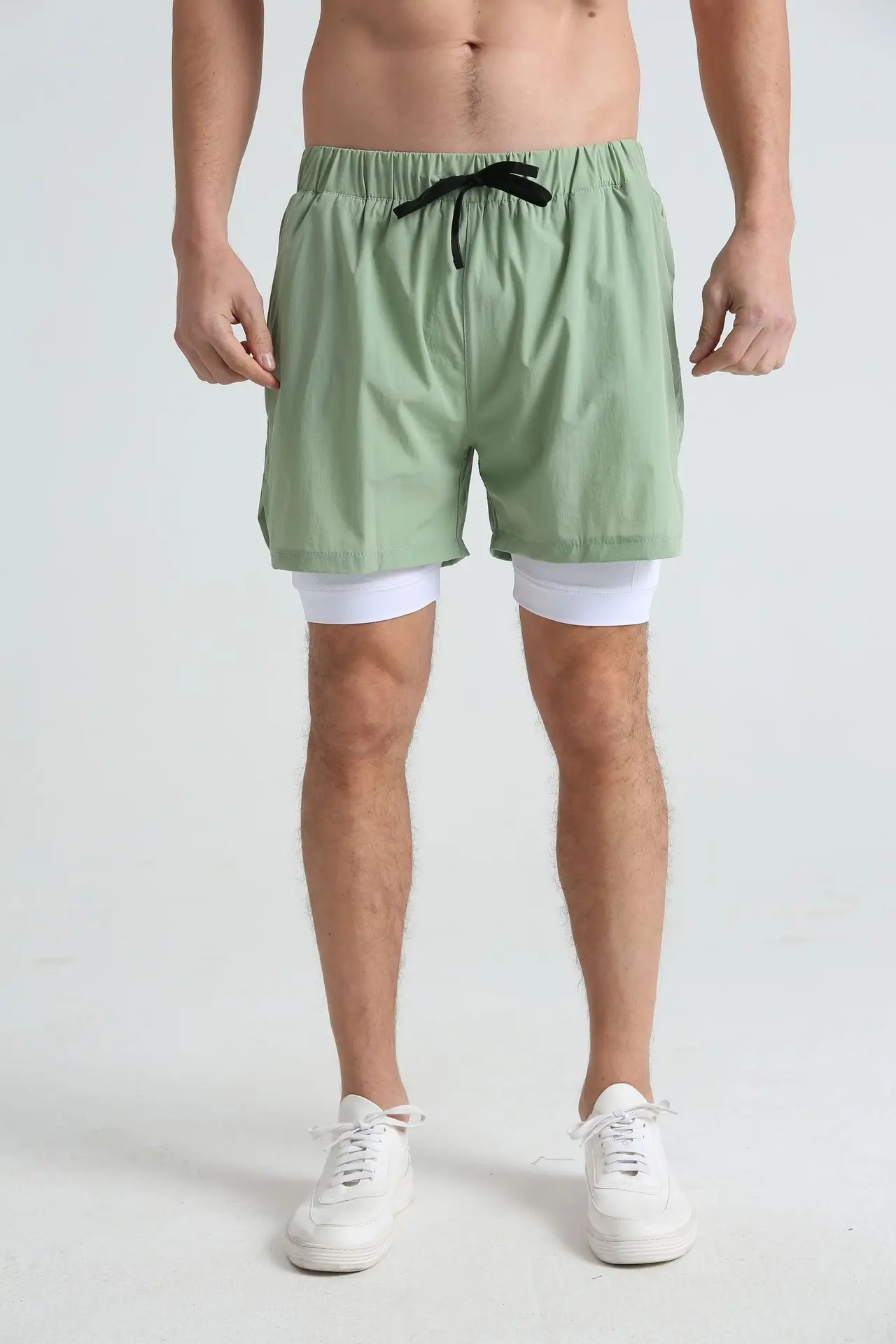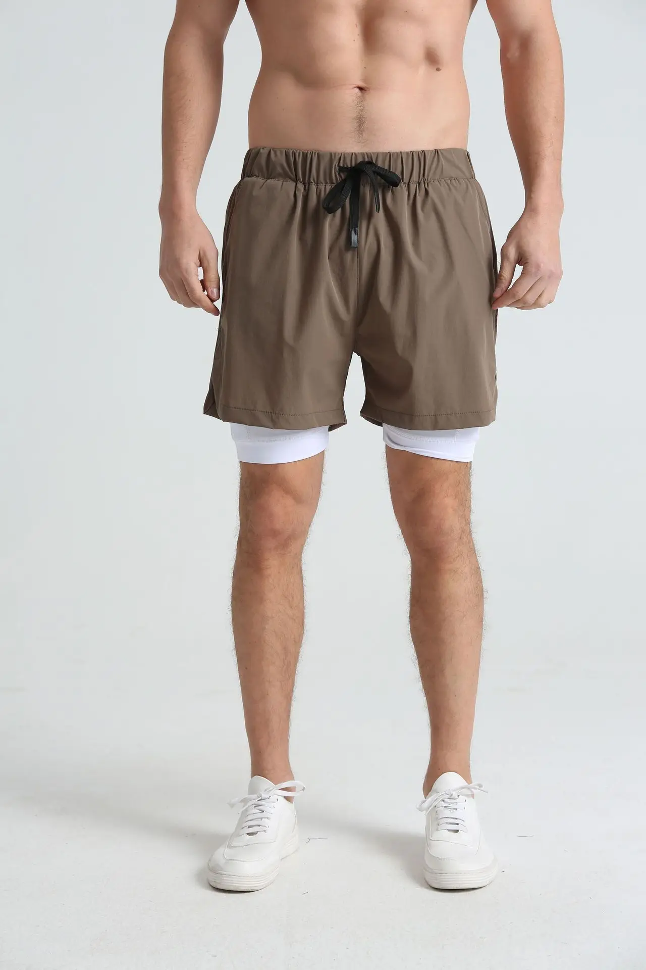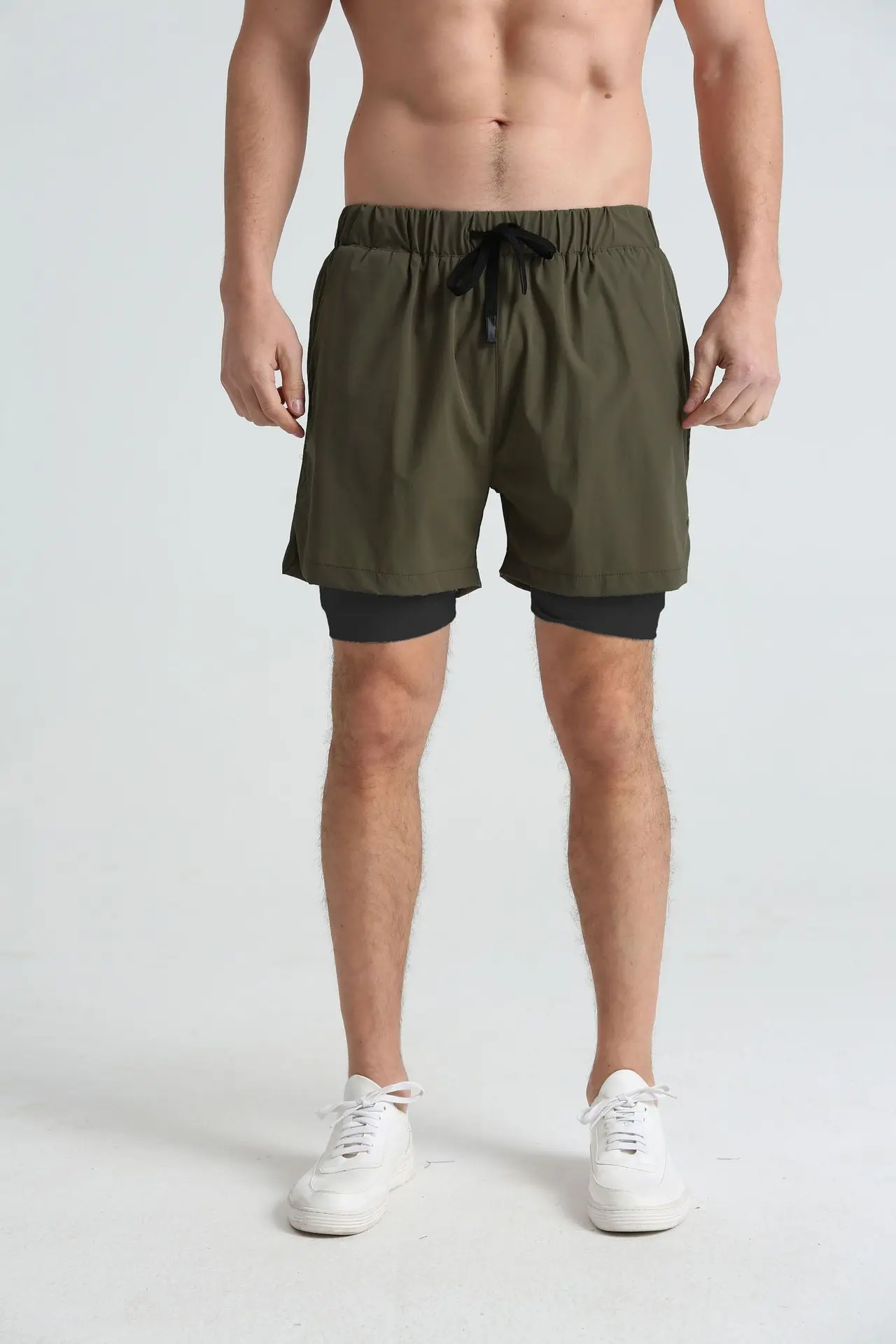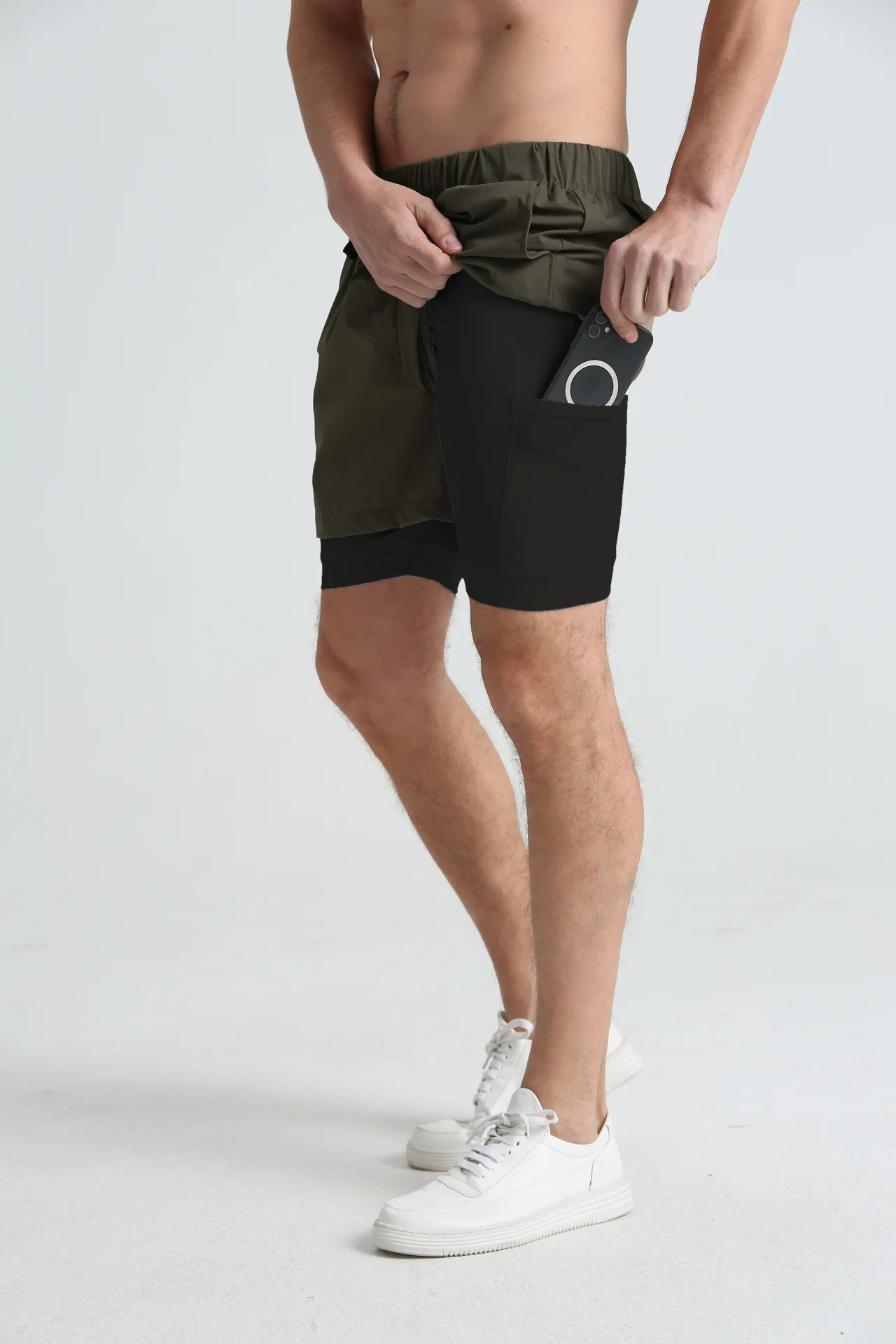Men's sports double-deck shorts Fitness Quick Dry Training Shorts Casual 2 In 1 Multi-pocket sweatpants Men Gyms Running shorts